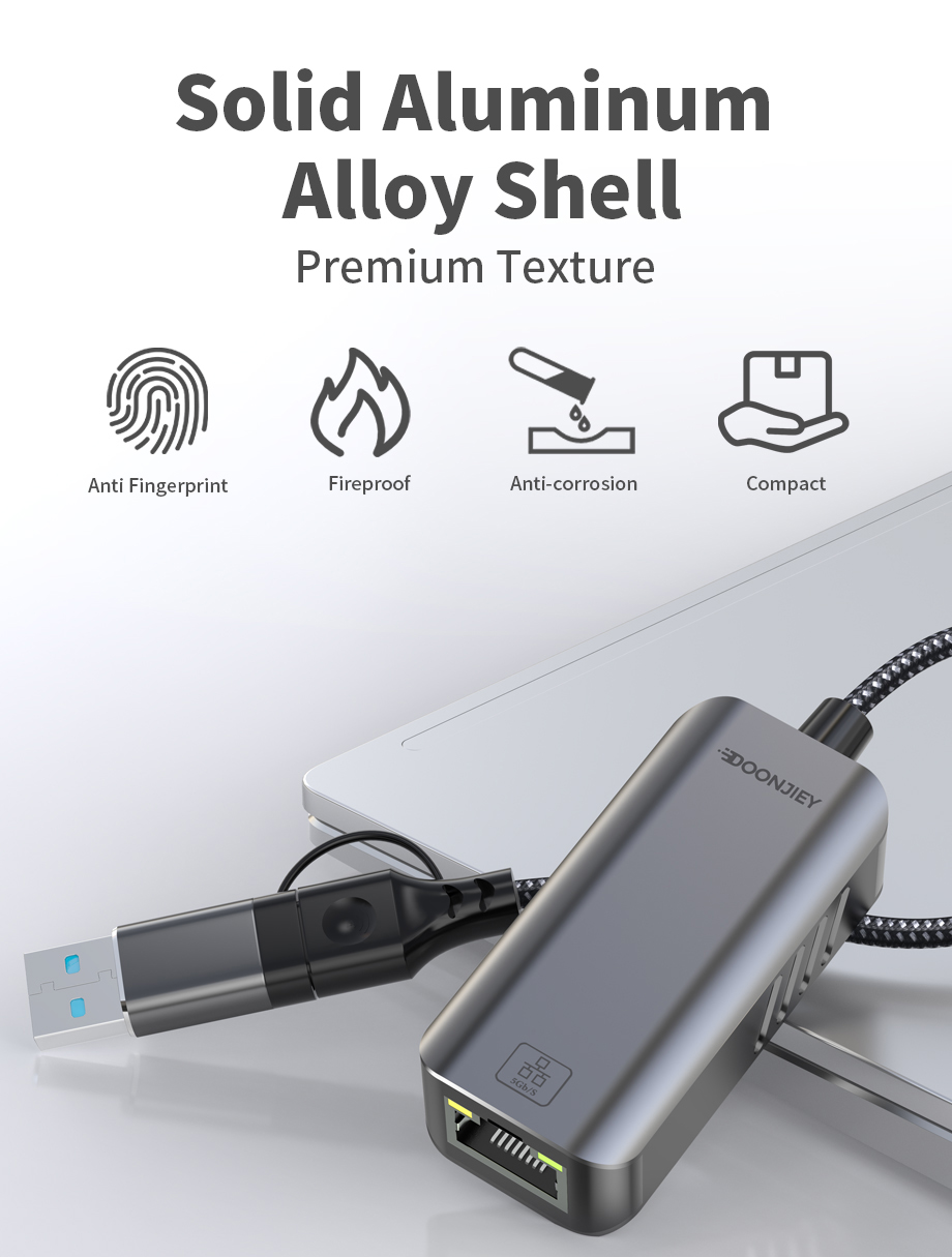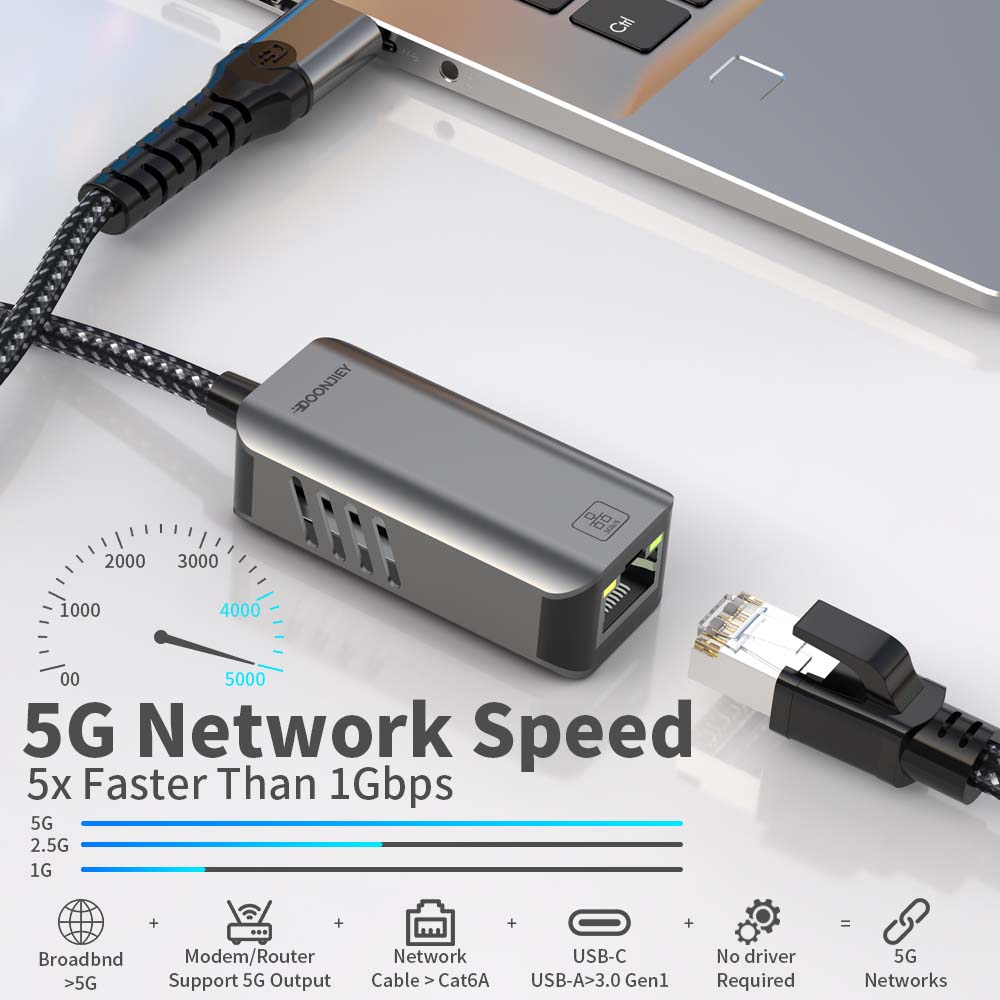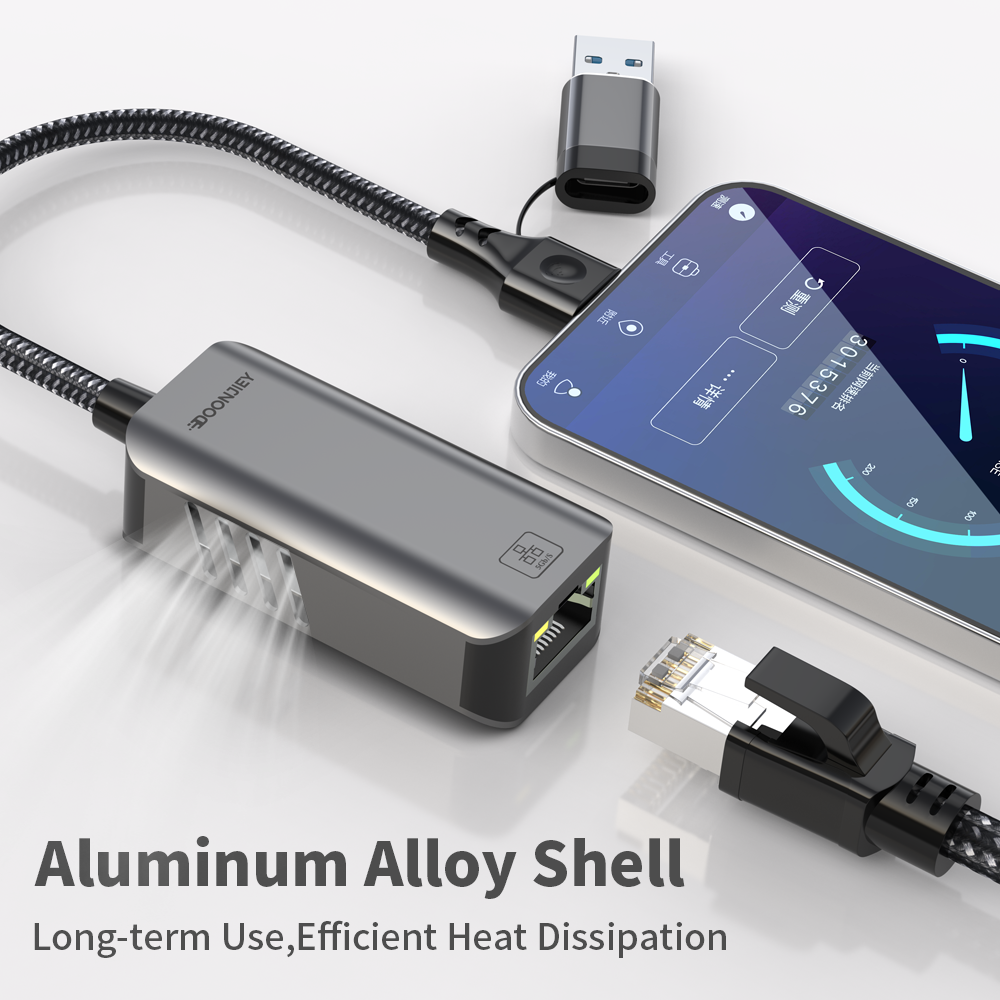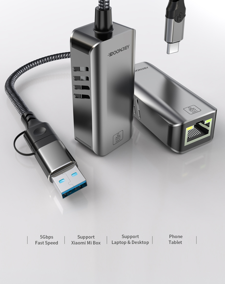 Home    Ethernet Adapter    5Gbps USB 3.0 Type C Ethernet Adapter 2 in 1 USB C to RJ45 Wired Network Card 5000Mbps Lan Adapter for Laptop Macbook Cell Phone