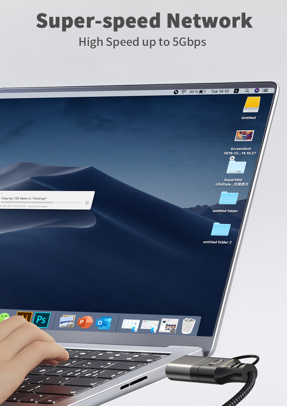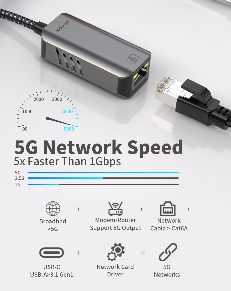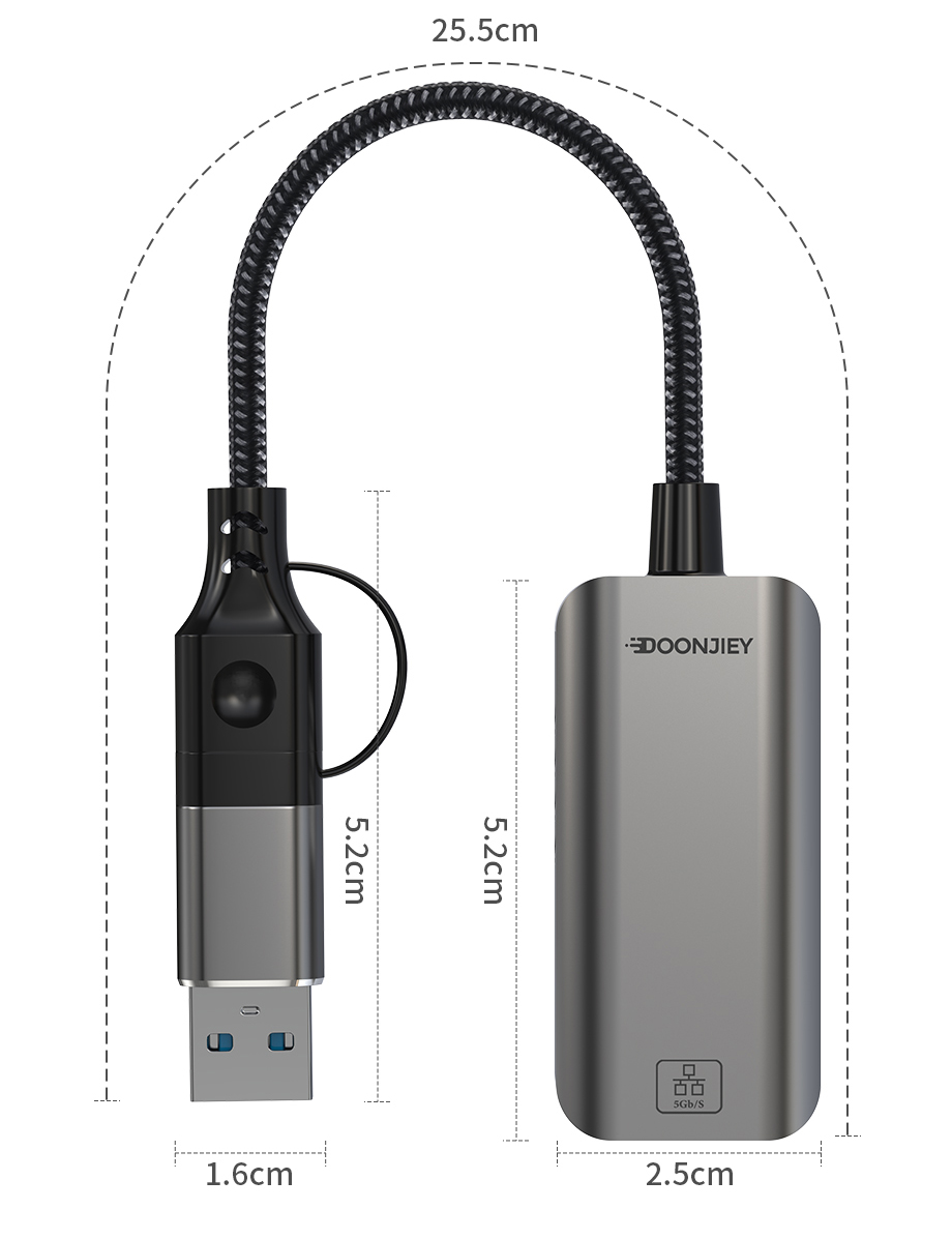 Home    Ethernet Adapter    5Gbps USB 3.0 Type C Ethernet Adapter 2 in 1 USB C to RJ45 Wired Network Card 5000Mbps Lan Adapter for Laptop Macbook Cell Phone