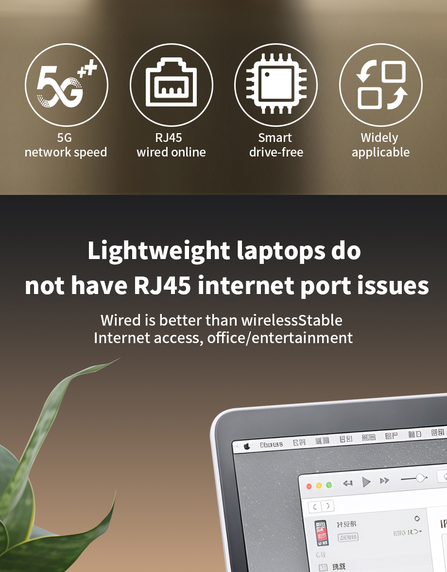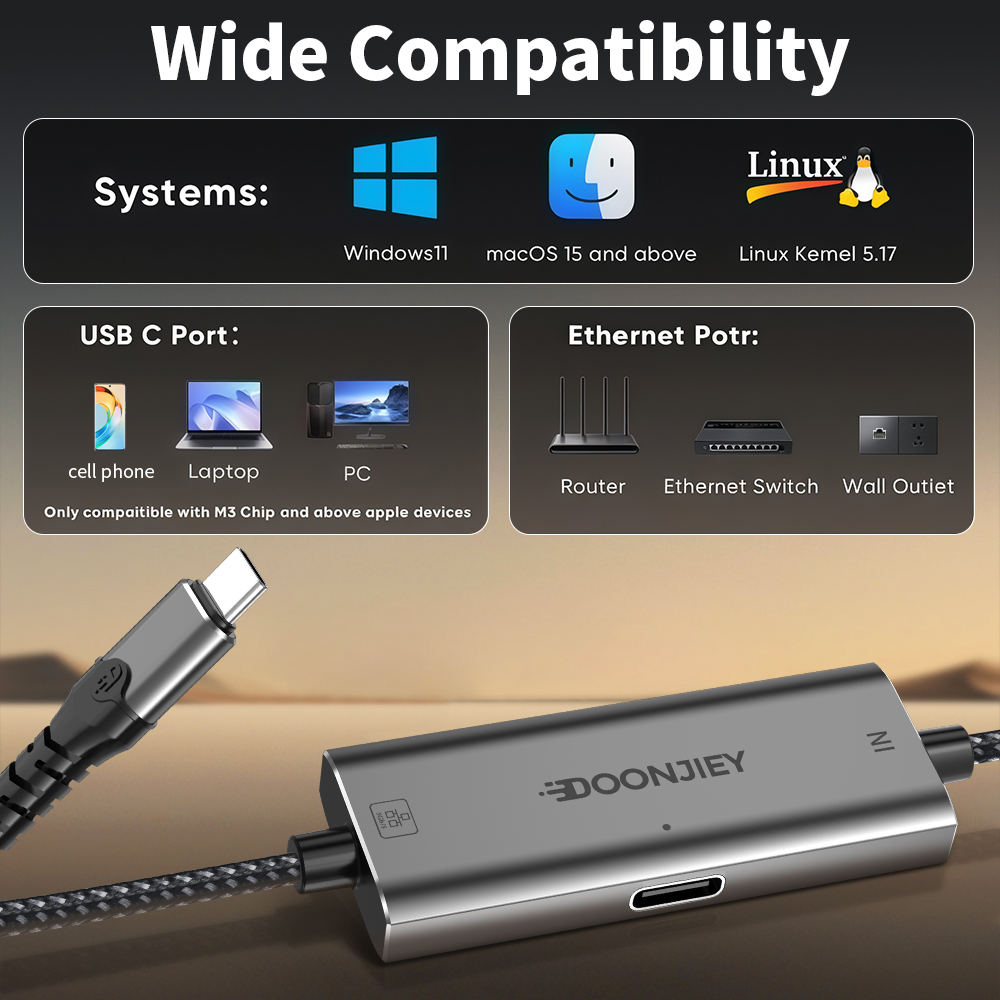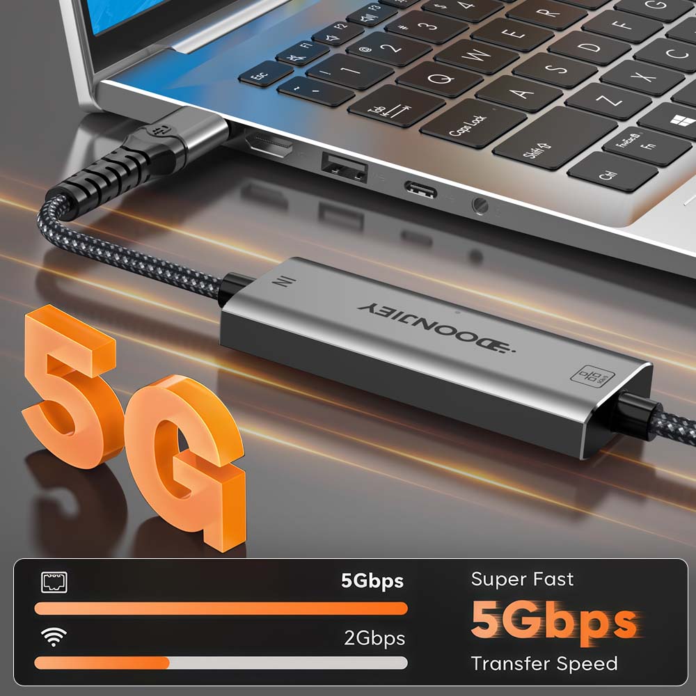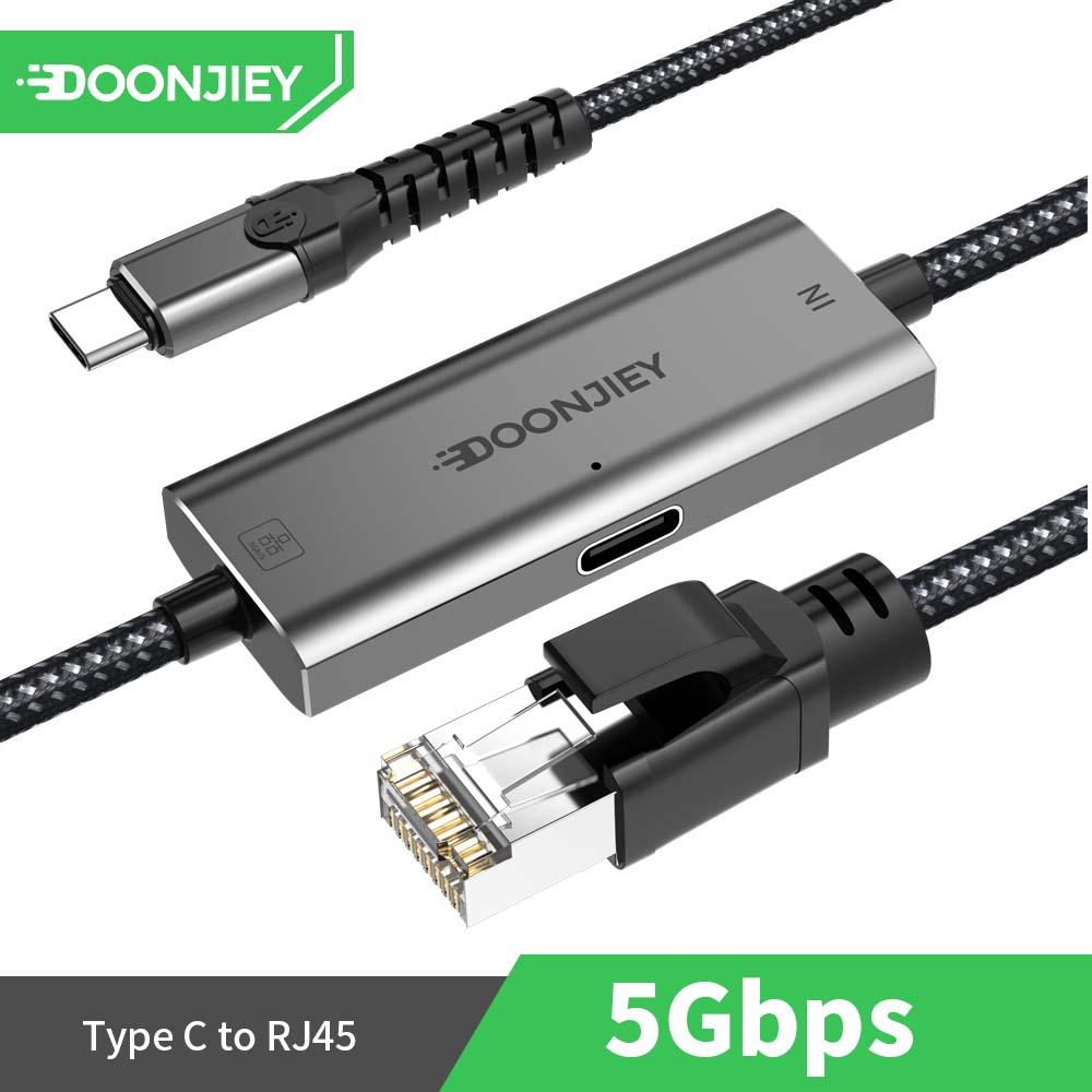 Home    Ethernet Adapter    USB C to Ethernet Adapter 5Gbps High Speed Type C to RJ45 LAN Network Connector With DP 100W Fast Charging For Laptop Tablet Desktop