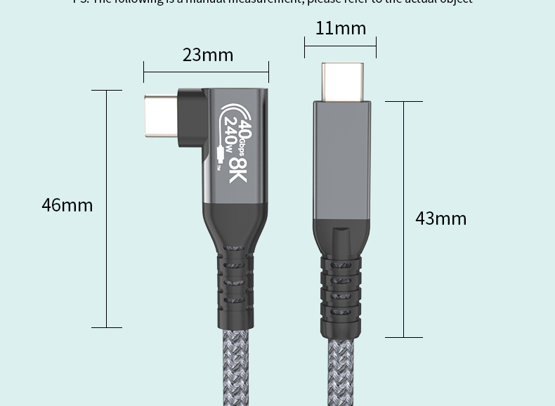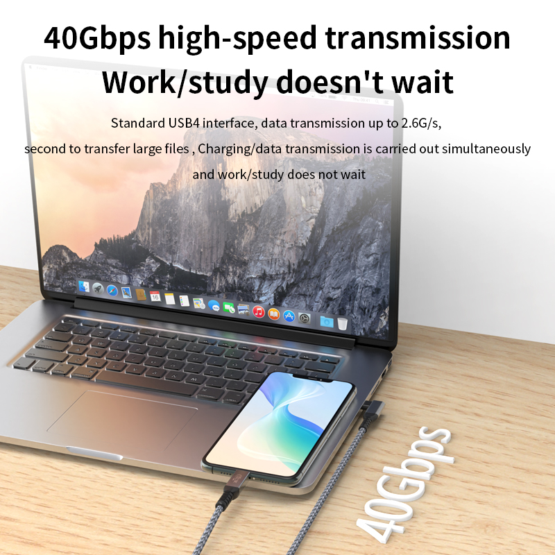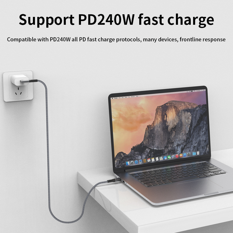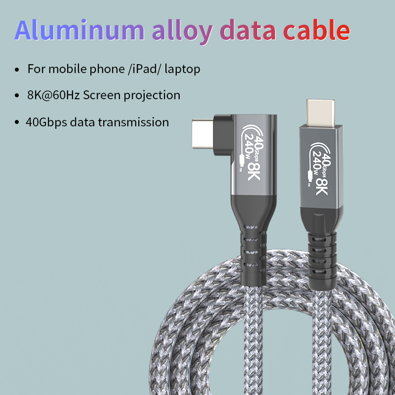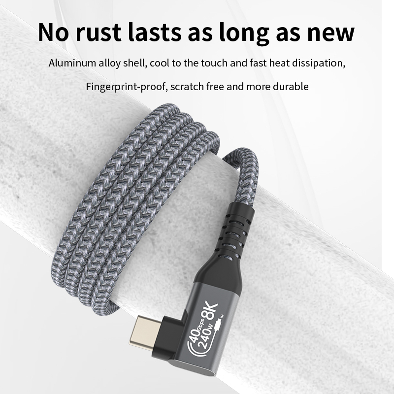 USB4 Cable USB4 40Gbps Data Sync 240W Type C Fast Charging Cable 8K 60Hz Video Display 90 Degree For Thunderbolt 4 5 Laptop