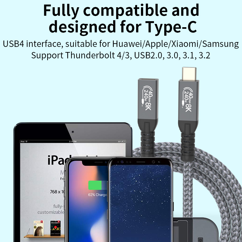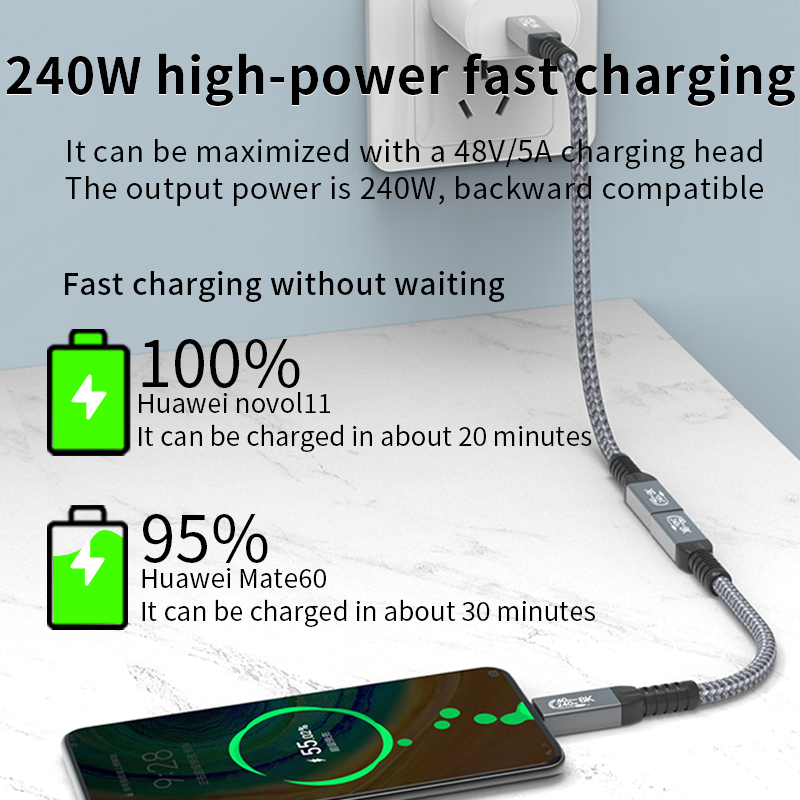 Home    TYPE C Cable    USB4 Type C Cable 8K@60Hz Female Extension Cable 40Gbps Data Transfer PD240W Fast Charge USB C Data Cable Compatible Thunderbolt 3 4