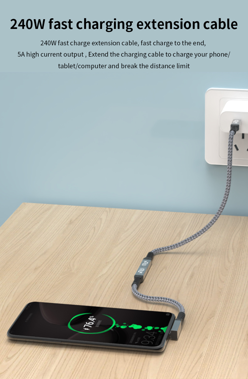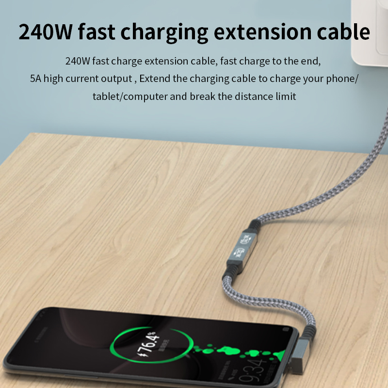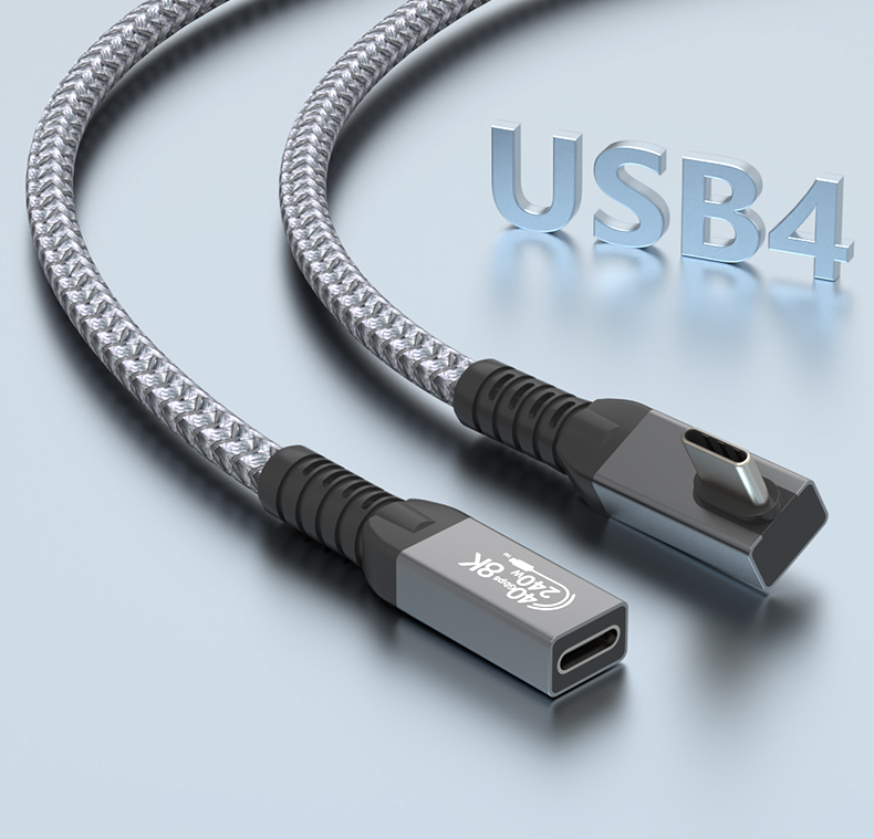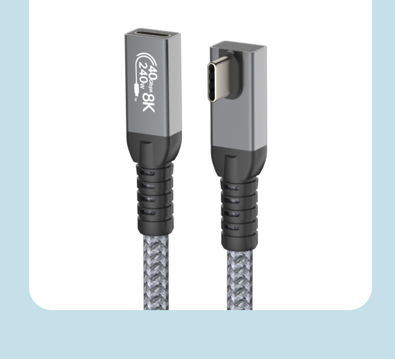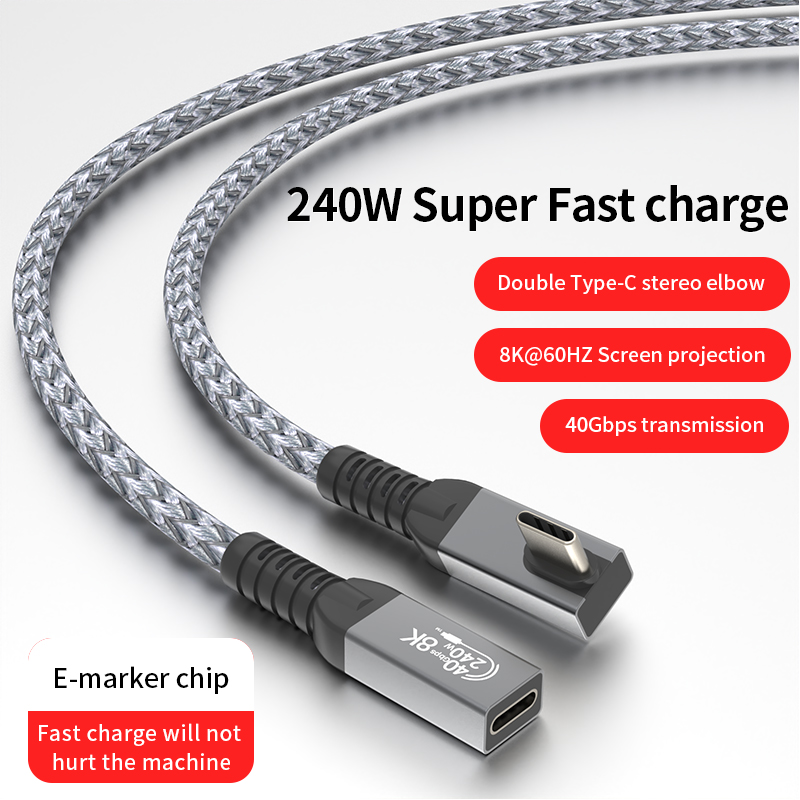 240W USB 4 Cable Right Angle 40Gbps Data Transfer 8K@60Hz Video Display 90 Degree Male to Female USB Type C Fast Charging Cable
