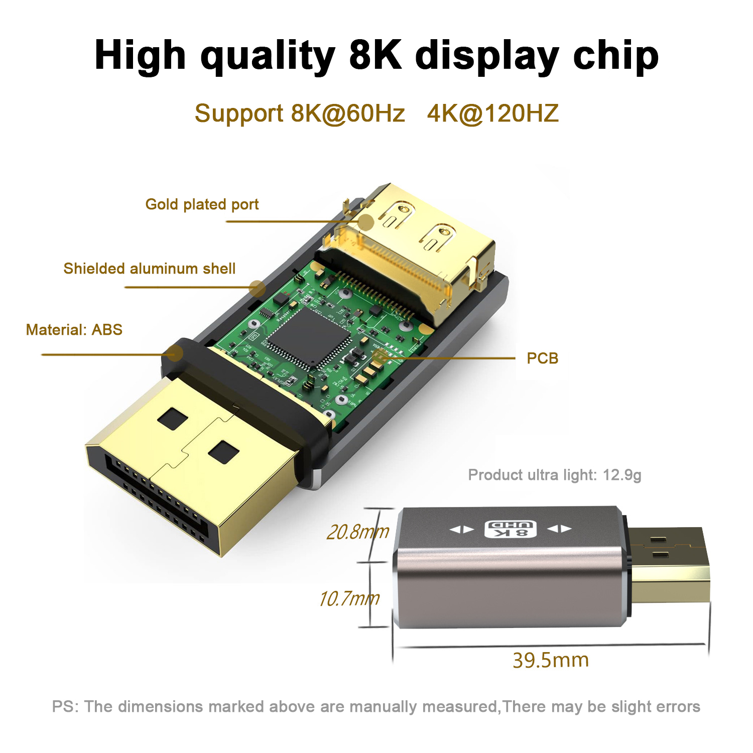 DP Male to Female 90 degree right Angle Elbow Computer Graphics Card Display Displayport converter 4K144hz HD steering head 8k