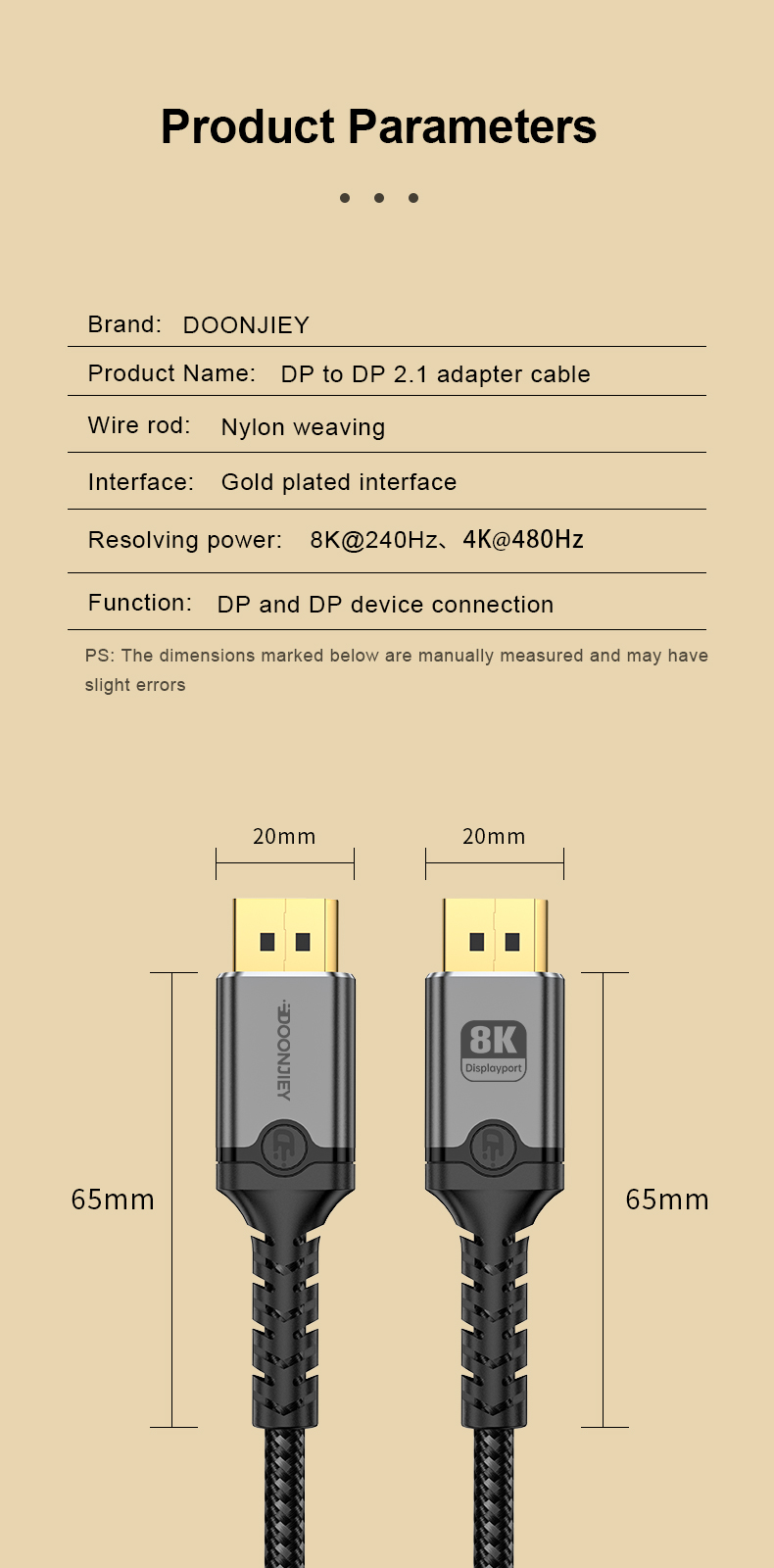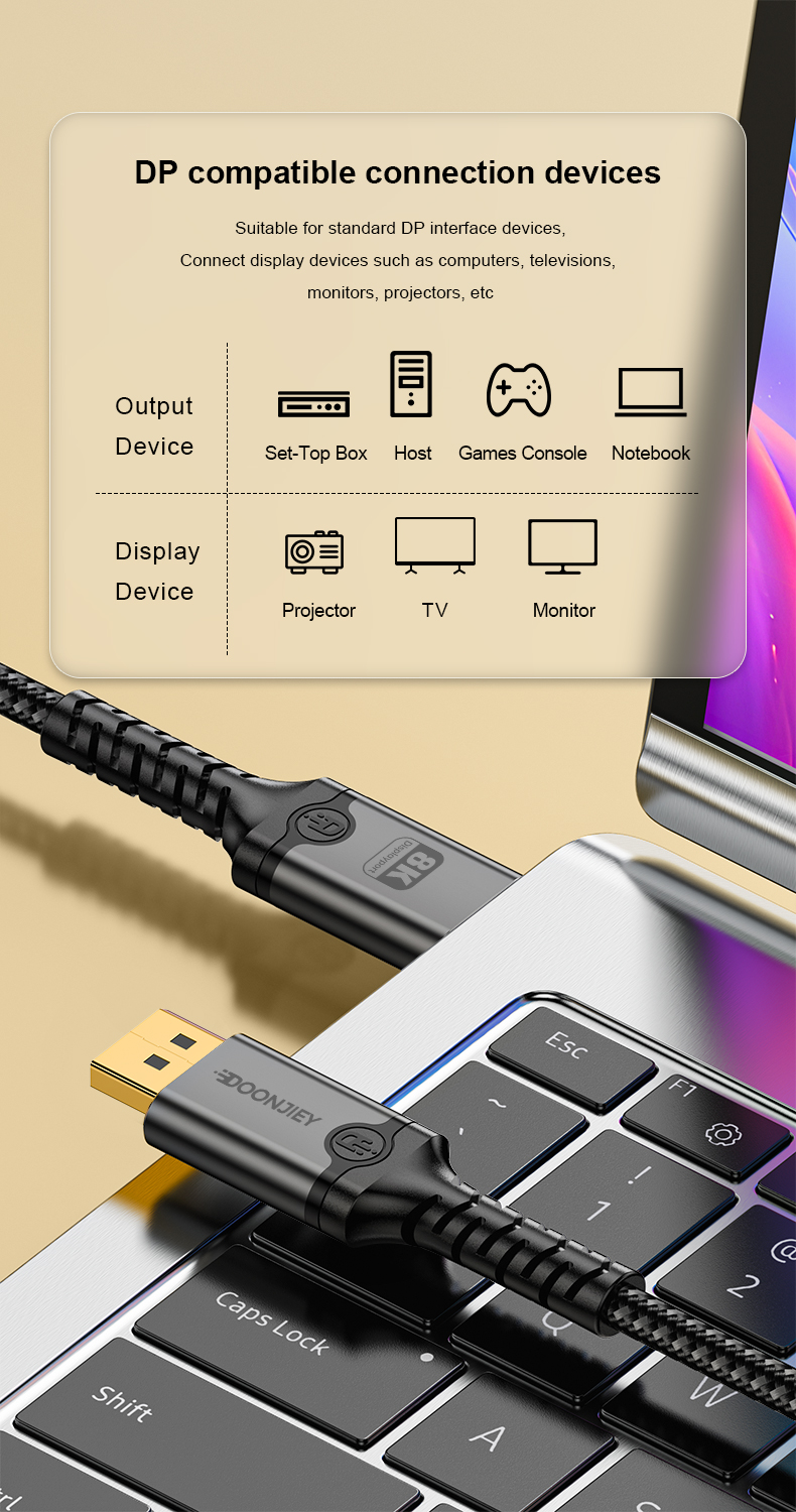 Home    DP Cable&Adapter    8K DisplayPort Cable DP 2.1 Cable 8K@60Hz 4K@120Hz Braided High Speed Display Port Wire for Laptop Xbox Projector Gaming Monitor