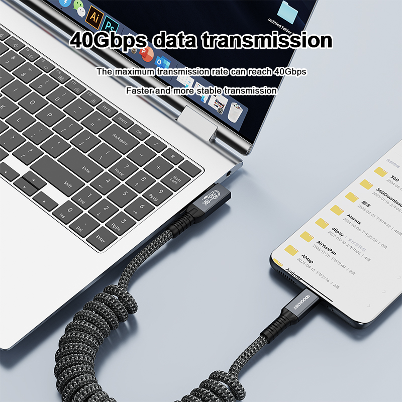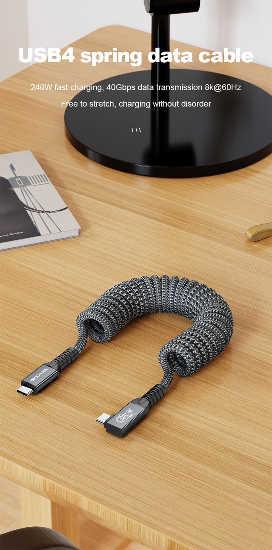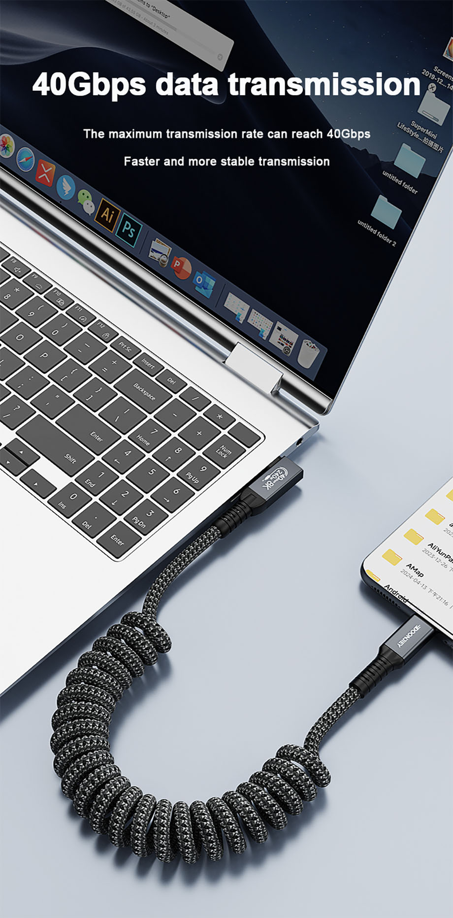 Spring Thunderbolt 4 USB C Data Cable 5A Fast Charging Type C Charge Cable 8K/60Hz 40Gbps USB4 Video Cord for iPhone 16 Huawei