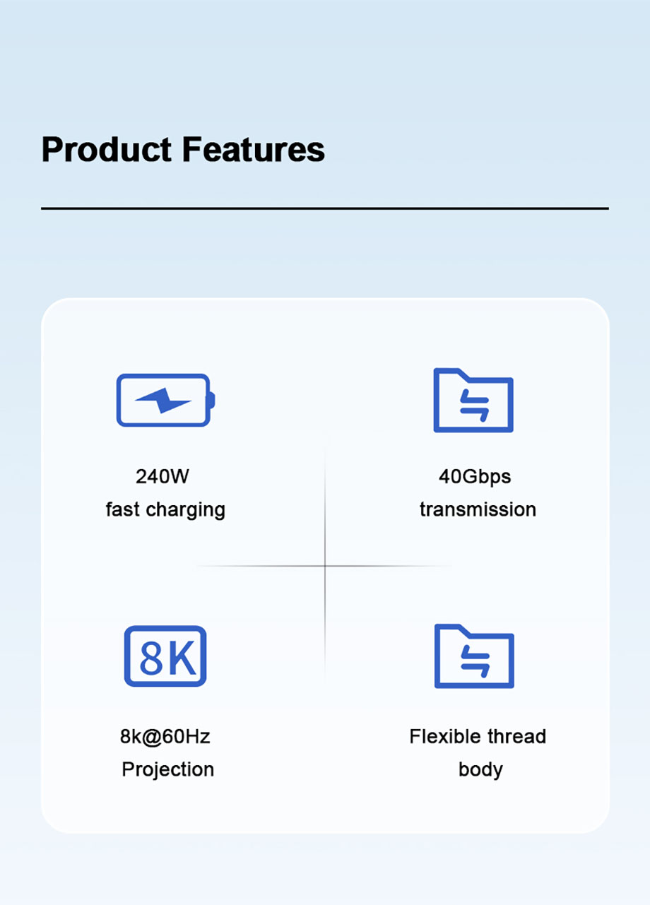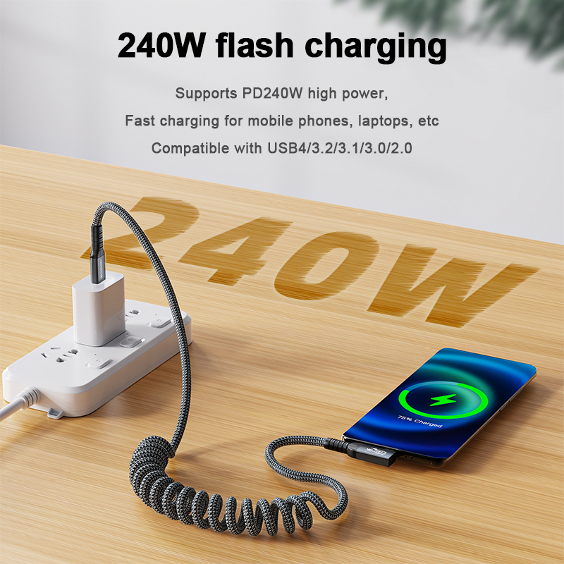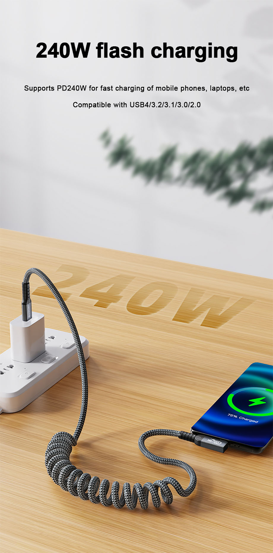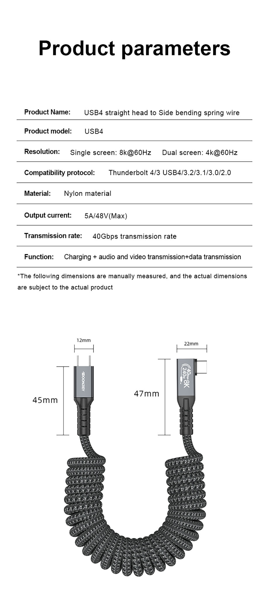 Spring Thunderbolt 4 USB C Data Cable 5A Fast Charging Type C Charge Cable 8K/60Hz 40Gbps USB4 Video Cord for iPhone 16 Huawei
