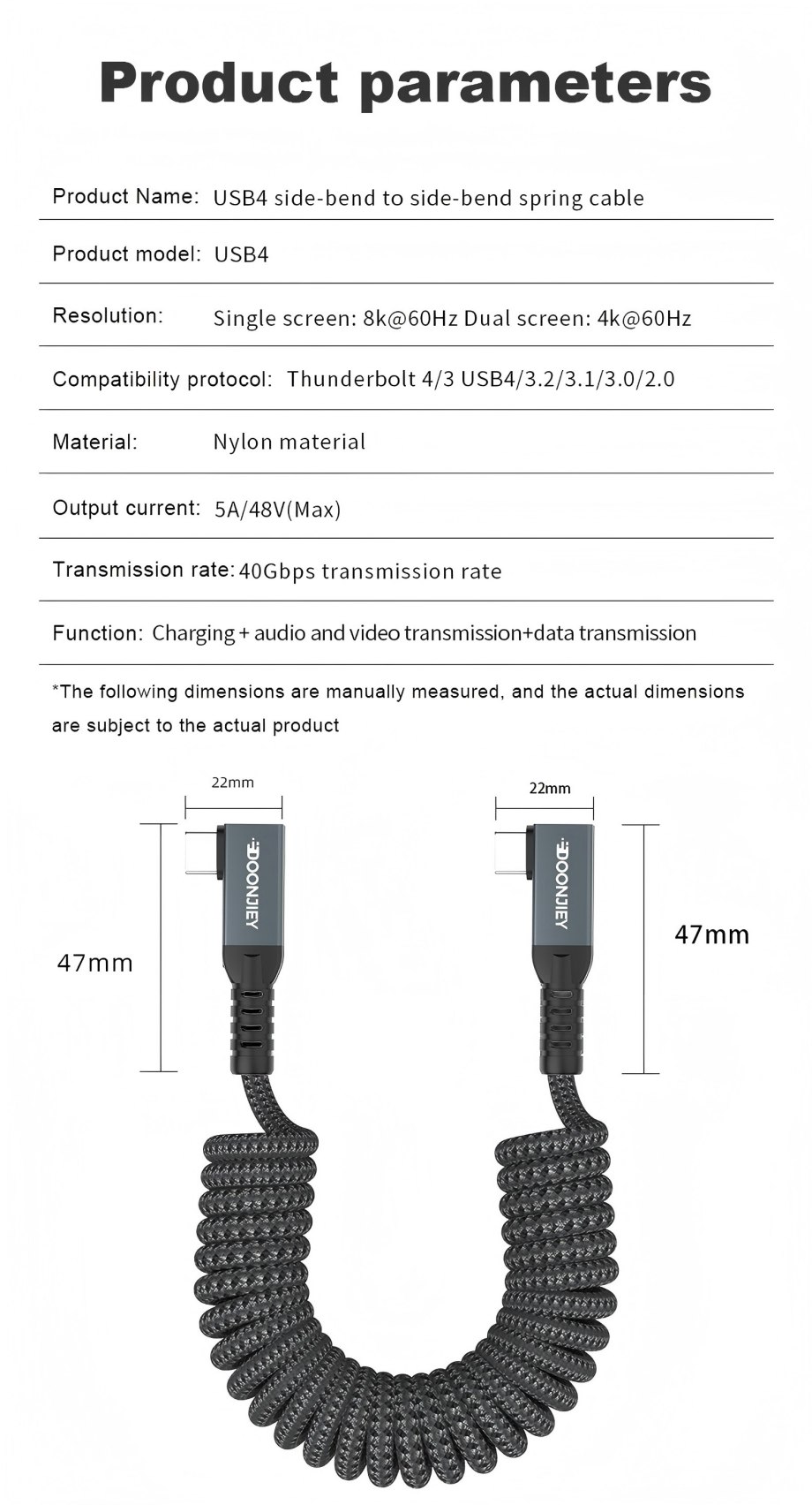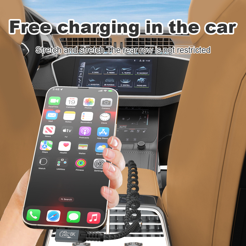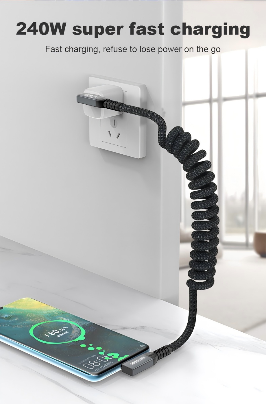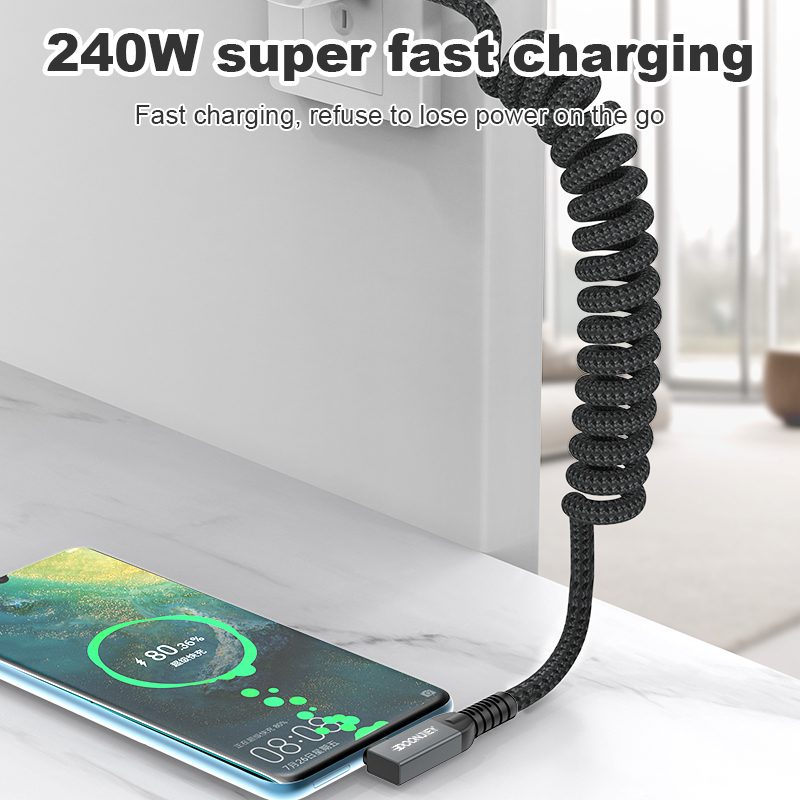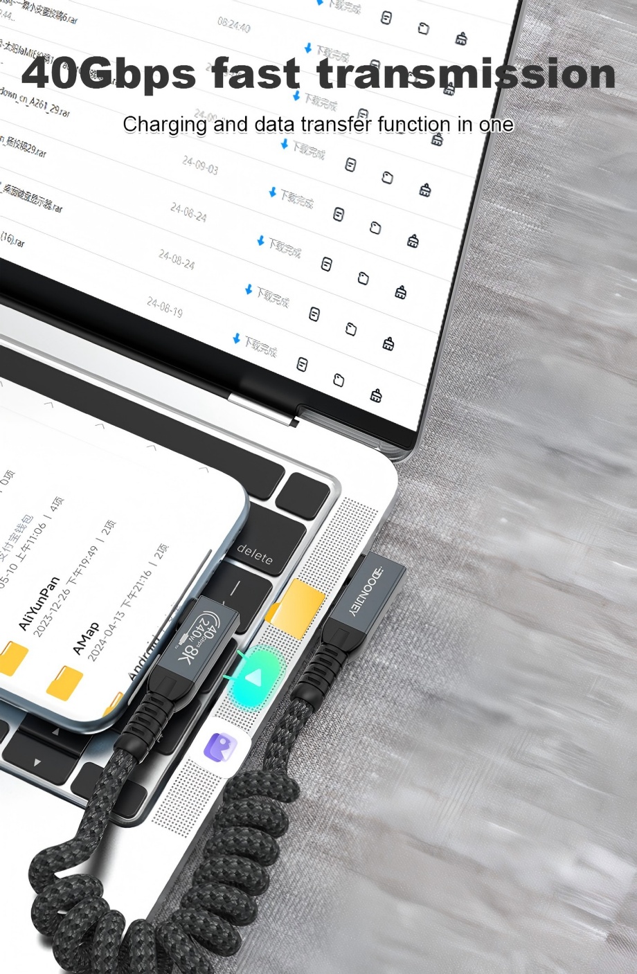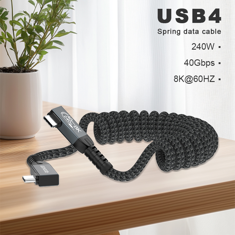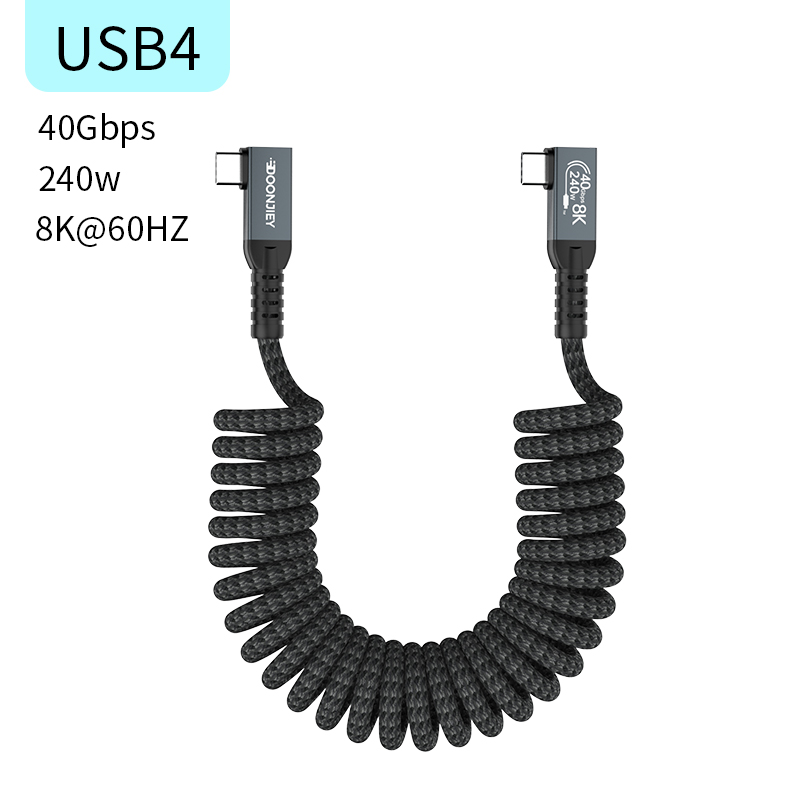 Home    TYPE C Cable    PD 240W Fast Charging Type C to C Cable Male to Male Stretchable Spring USB4 High-speed Transmission Screen Projection Cable