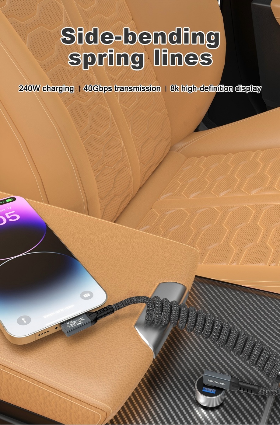 PD 240W Fast Charging Type C to C Cable Male to Male Stretchable Spring USB4 High-speed Transmission Screen Projection Cable