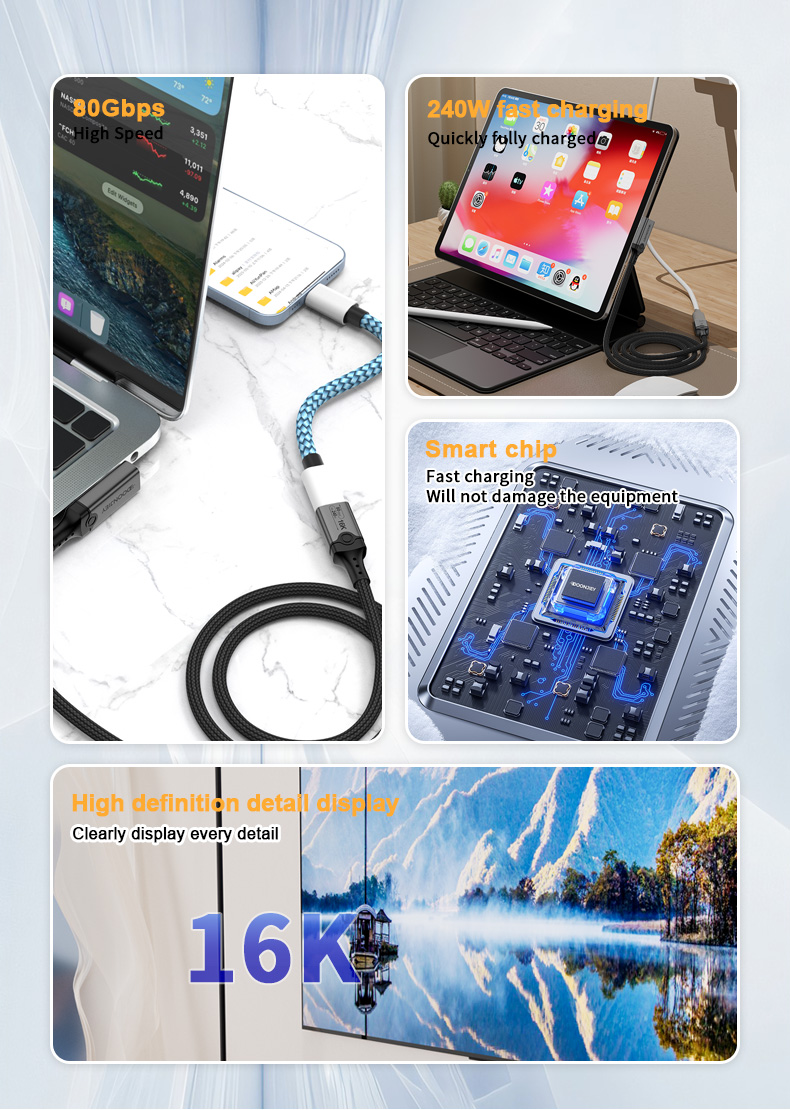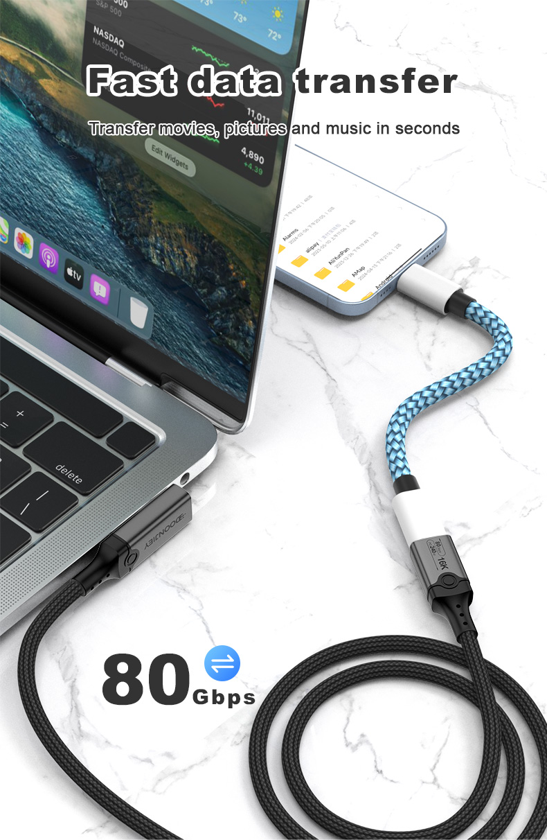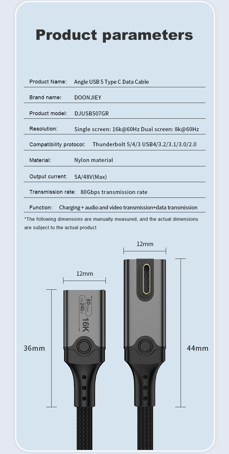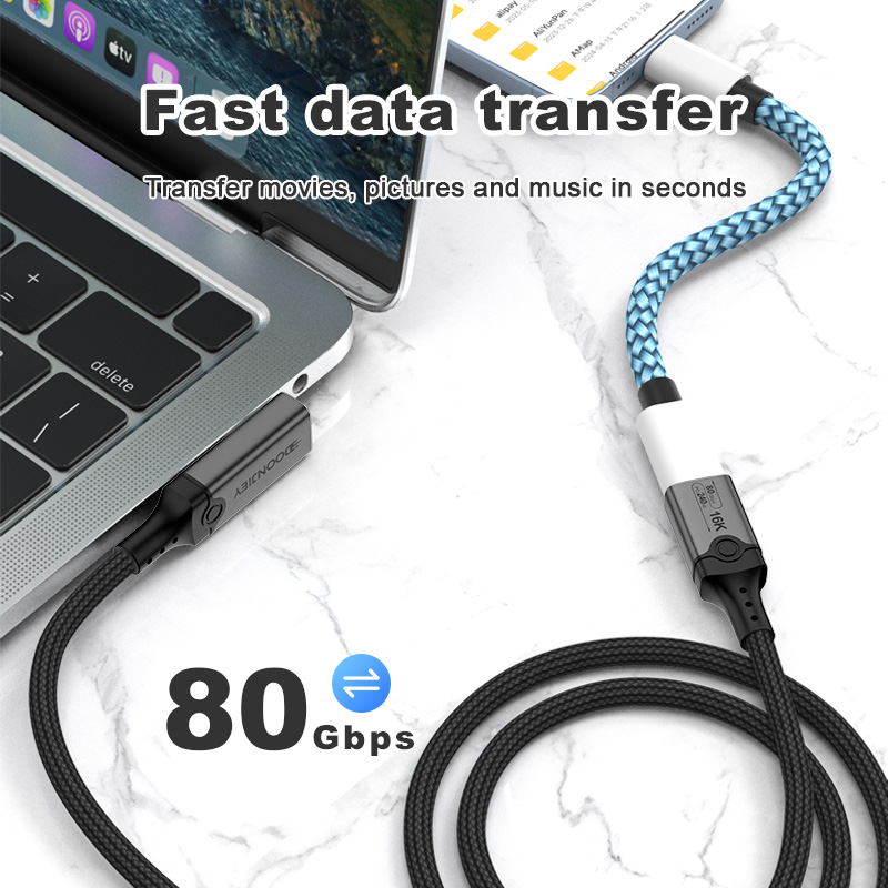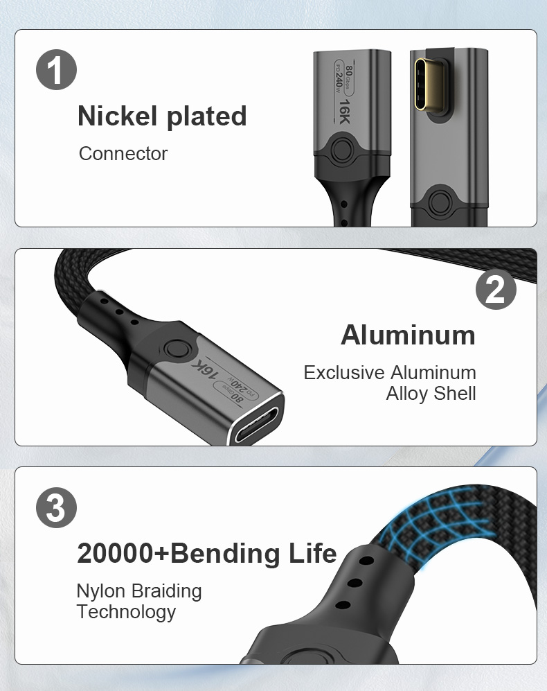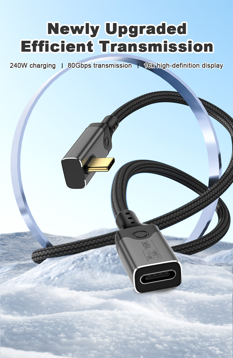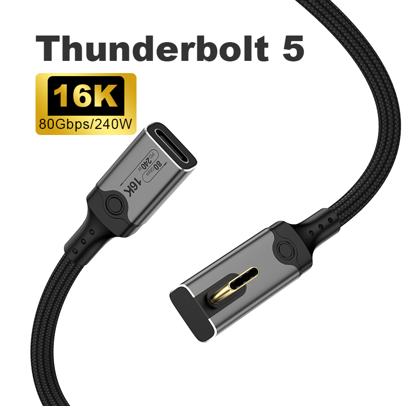 Angle USB 5 Type C Data Cable Male to Female 240W 80Gbps Fast Data Transfer 16K HD Projection Cable Compatible Thunderbolt 5 4