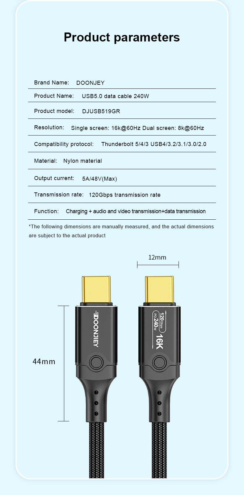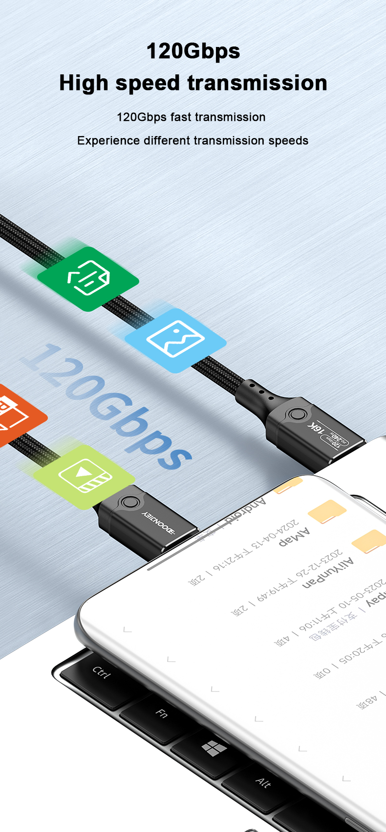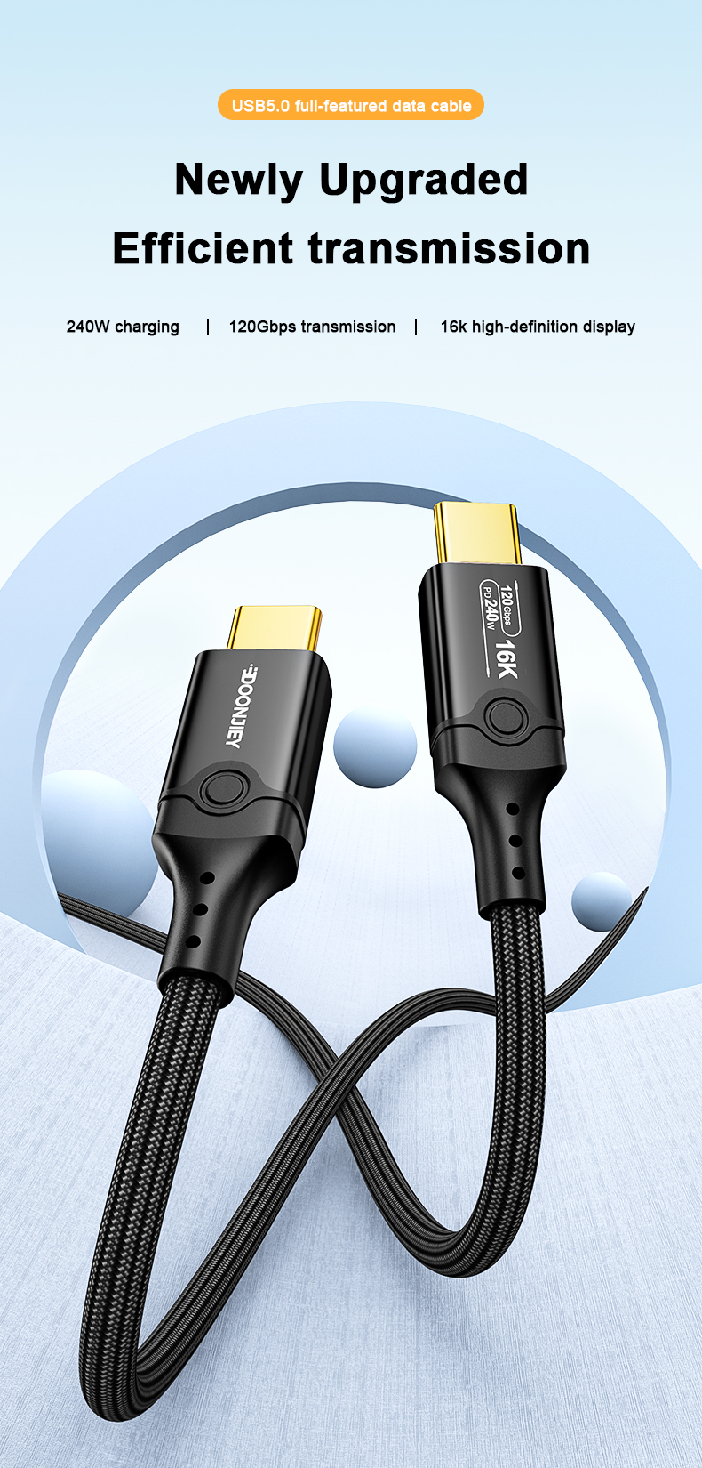 Home    TYPE C Cable    USB5.0 Full-function Thunderbolt 5 Data Cable 120Gbps Transmission PD 240W Fast Charging 16K Video Cable USB-C Mobile Phone Line