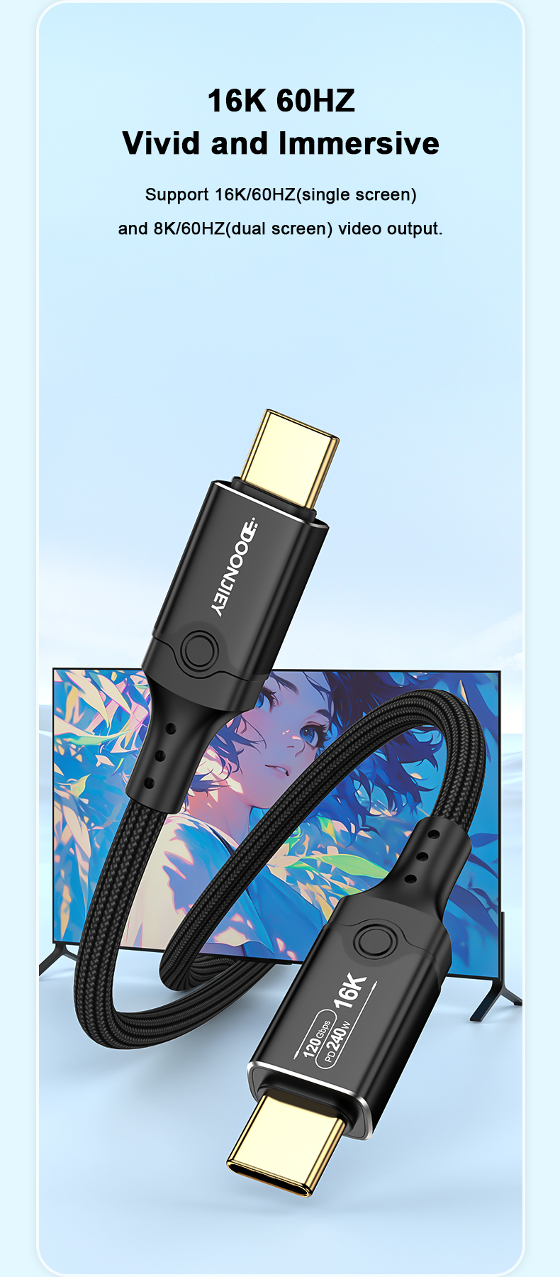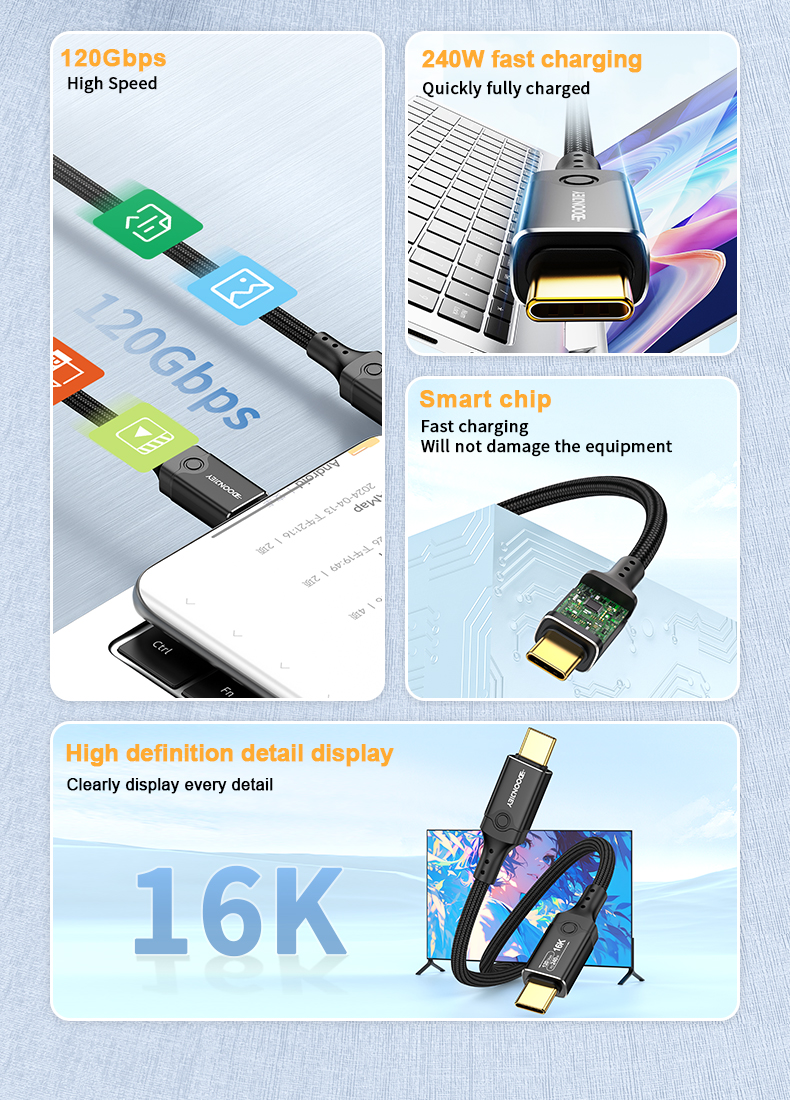 USB5.0 Full-function Thunderbolt 5 Data Cable 120Gbps Transmission PD 240W Fast Charging 16K Video Cable USB-C Mobile Phone Line