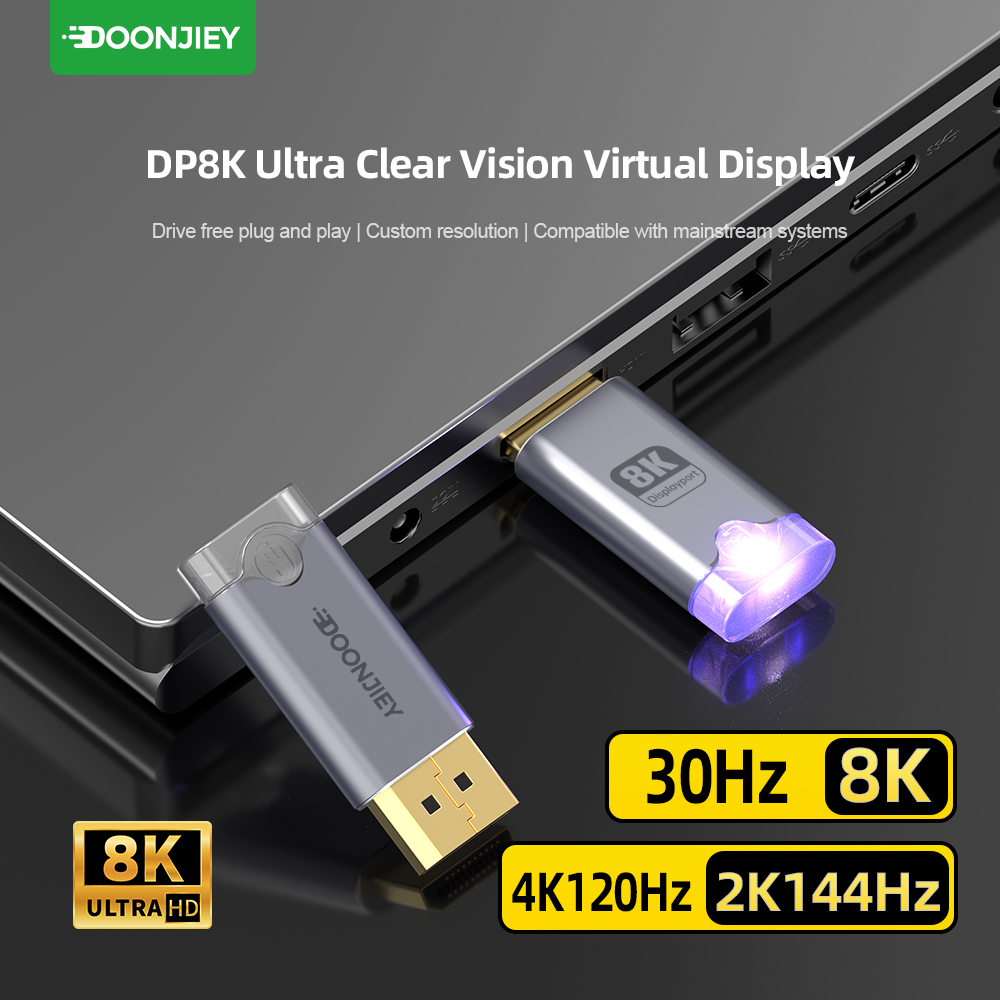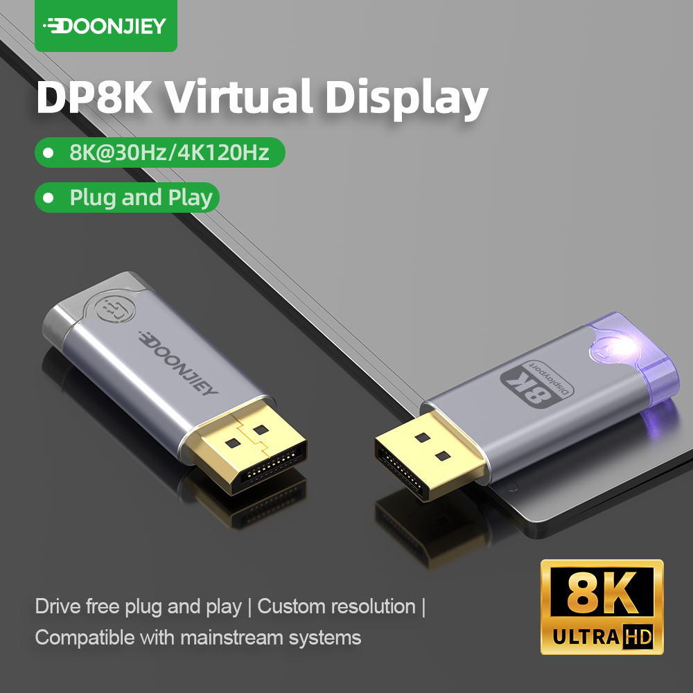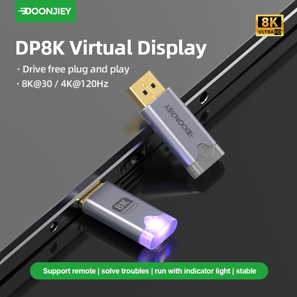 (DJDPVIRTUAL8K)DP Virtual Display Adapter 8K EDID Dummy Plug Headless Ghost Display Emulator 8K 60Hz for Laptops and Mobile Phones