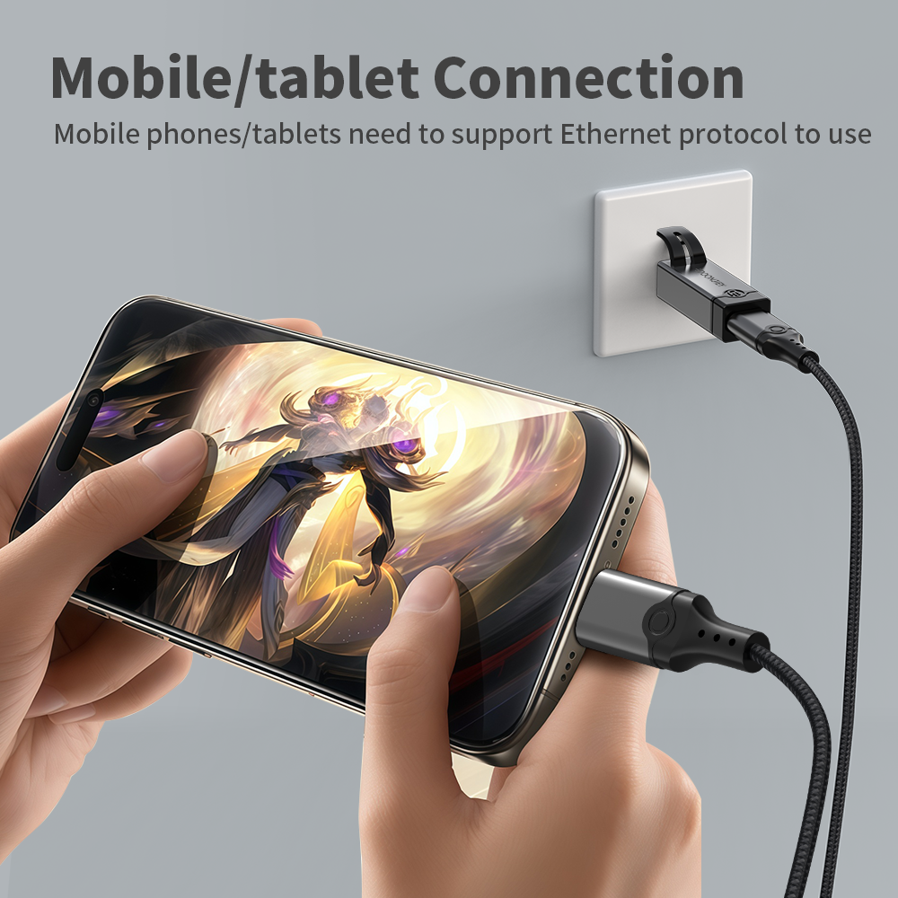 (DJNET20-1) Type C to RJ45 Enternet Adapter 1000M External Wired Network Converter for Laptops Tablets Phones