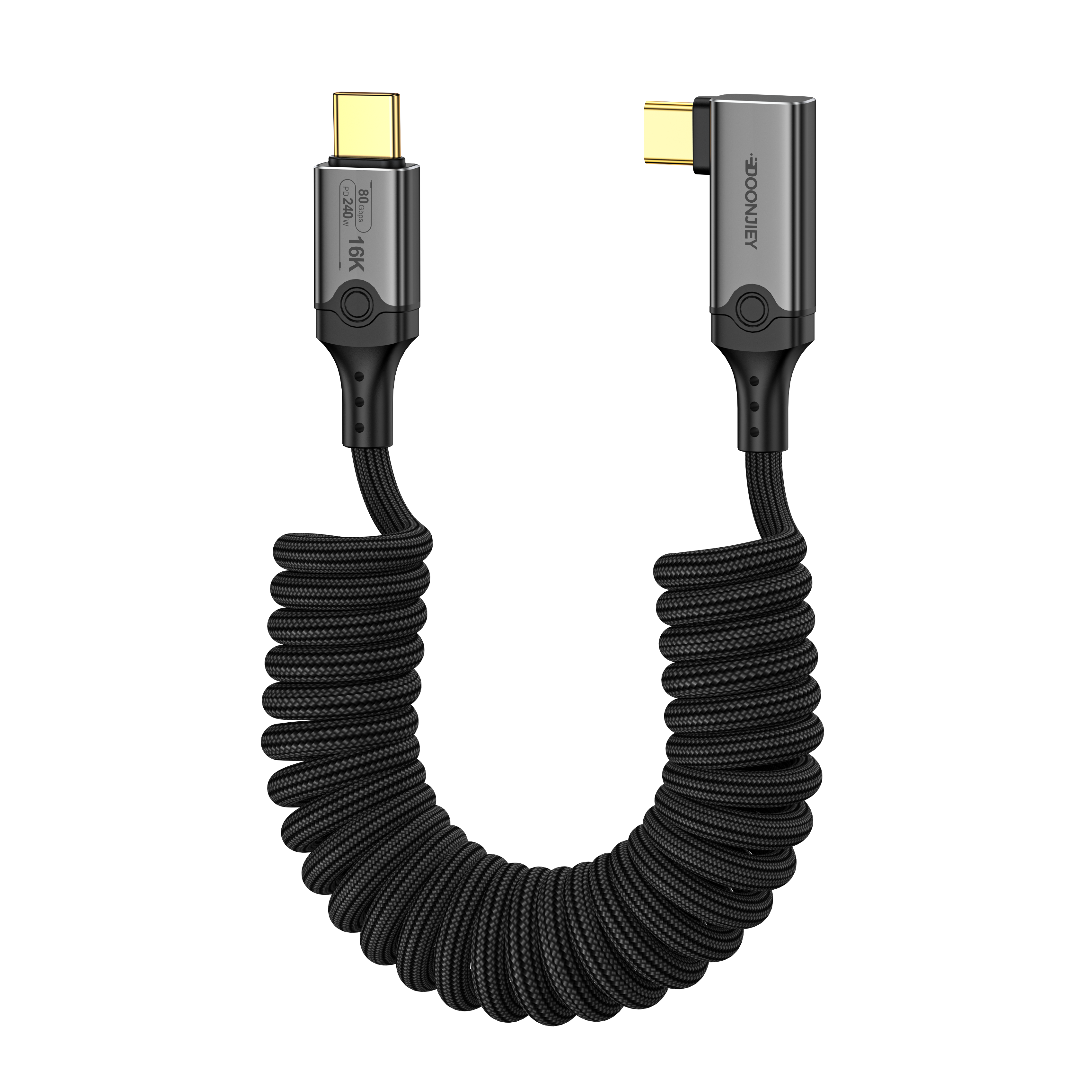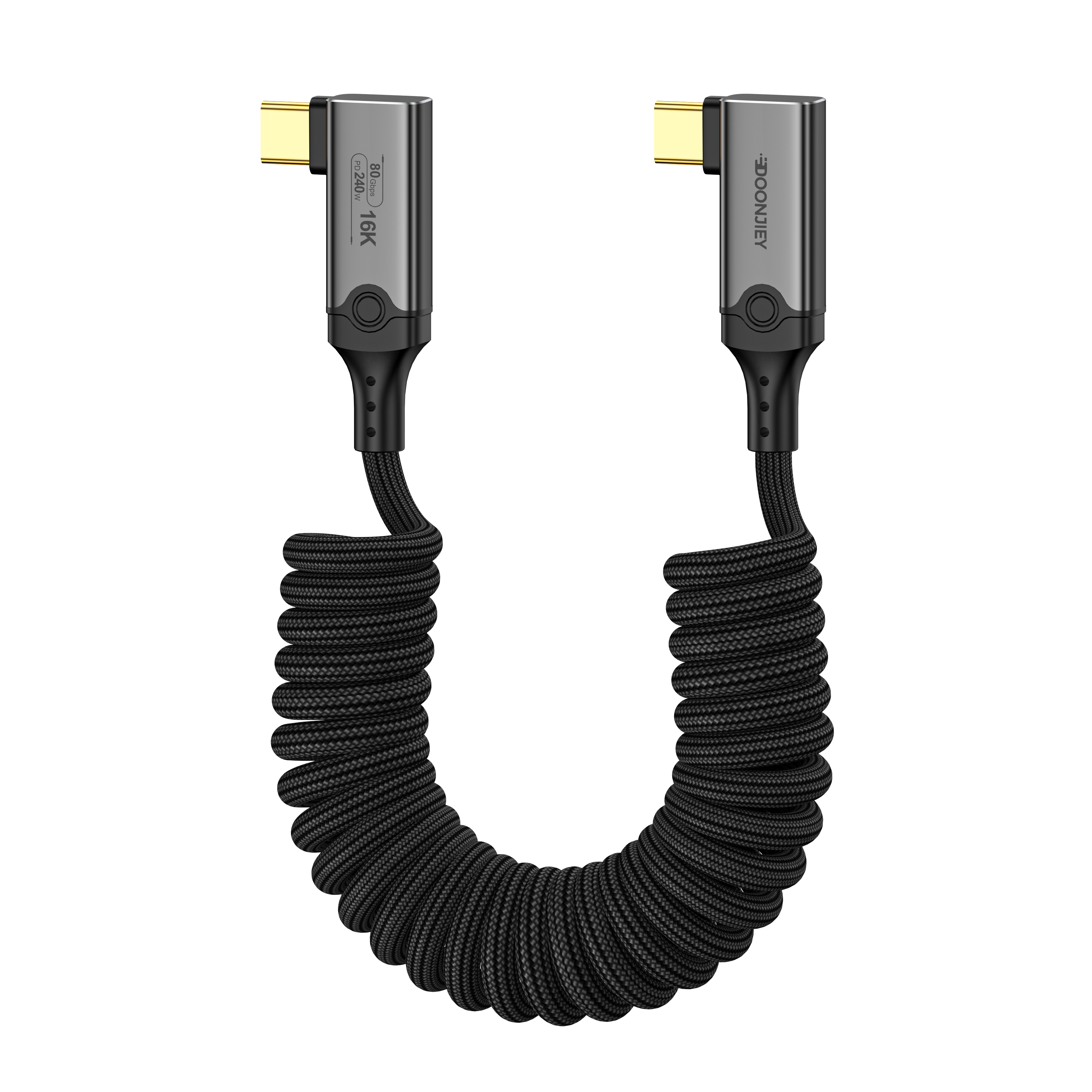 (DJUSB513GR)PD 240w Type C to Type C Thunderbolt 5 Full-function Spring Data Cable Male to 90° Degree Fast Charging 16K 60Hz High-definition Screen Projection Line