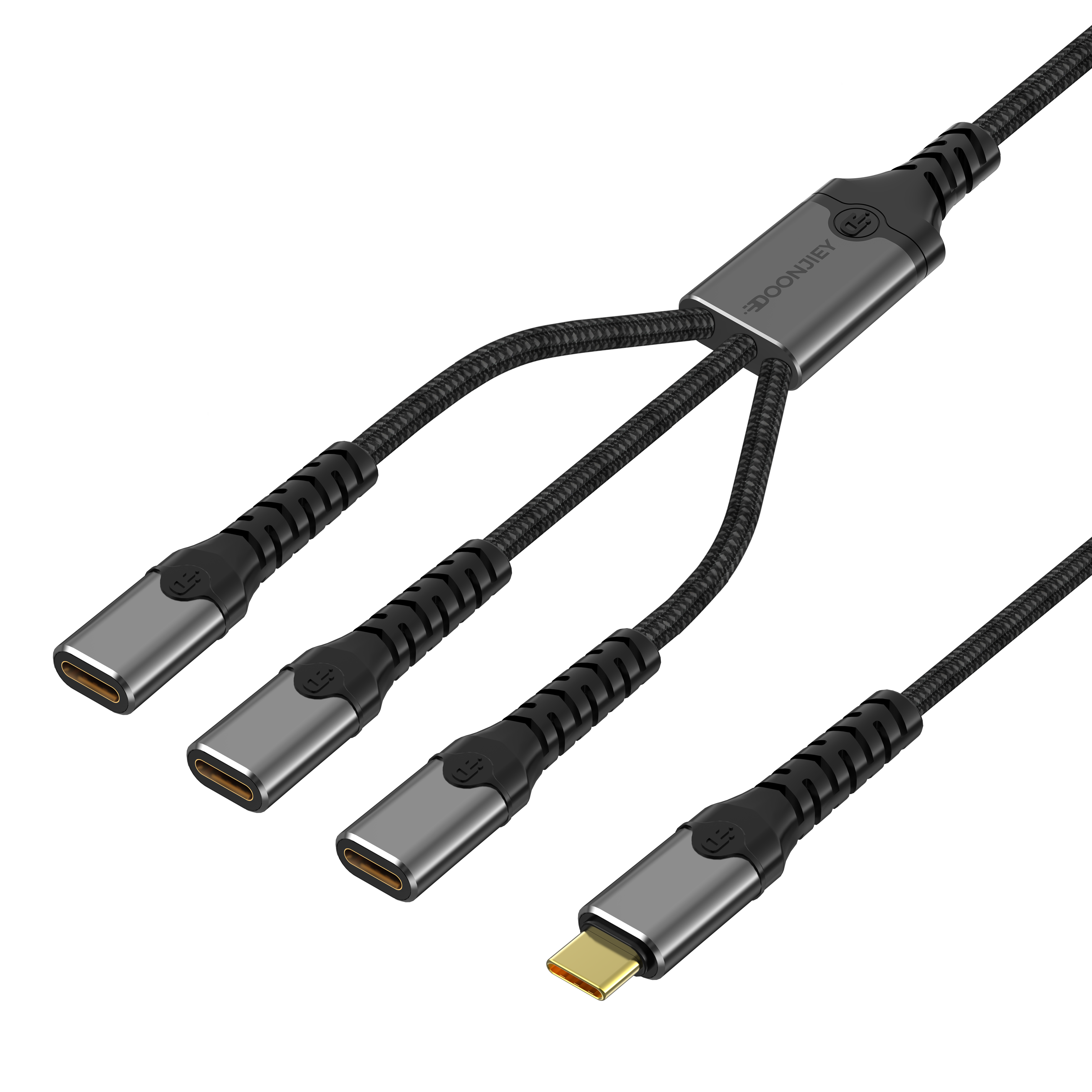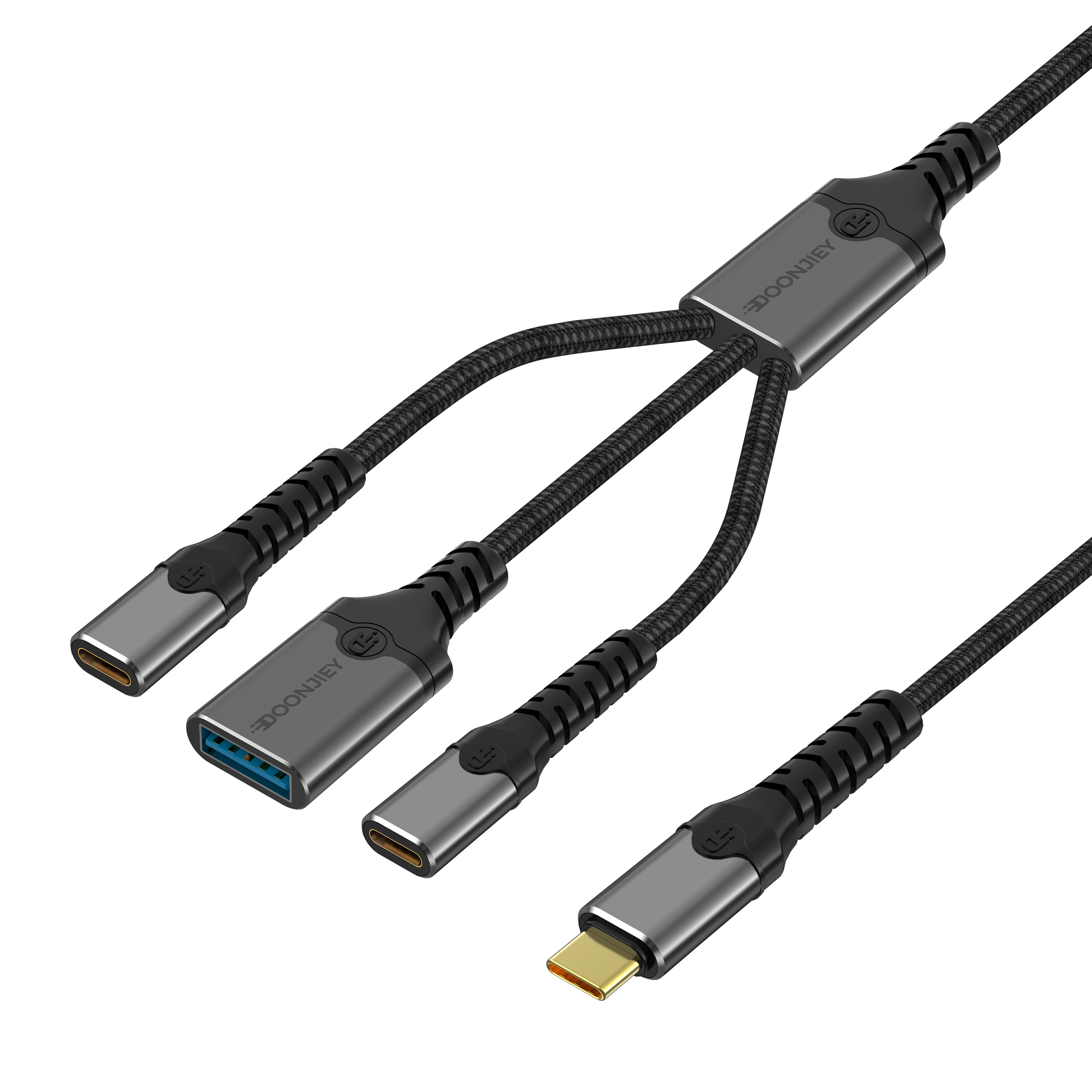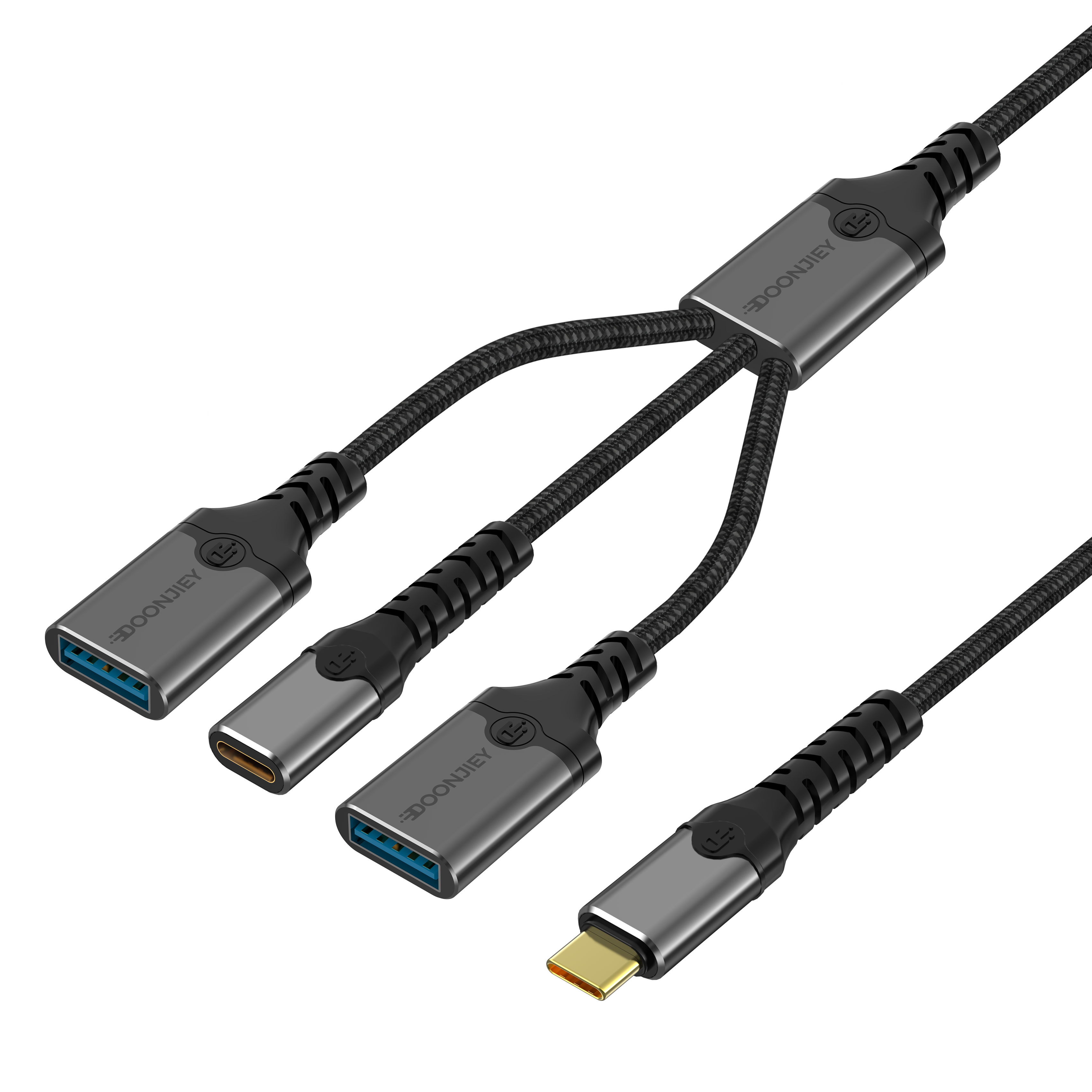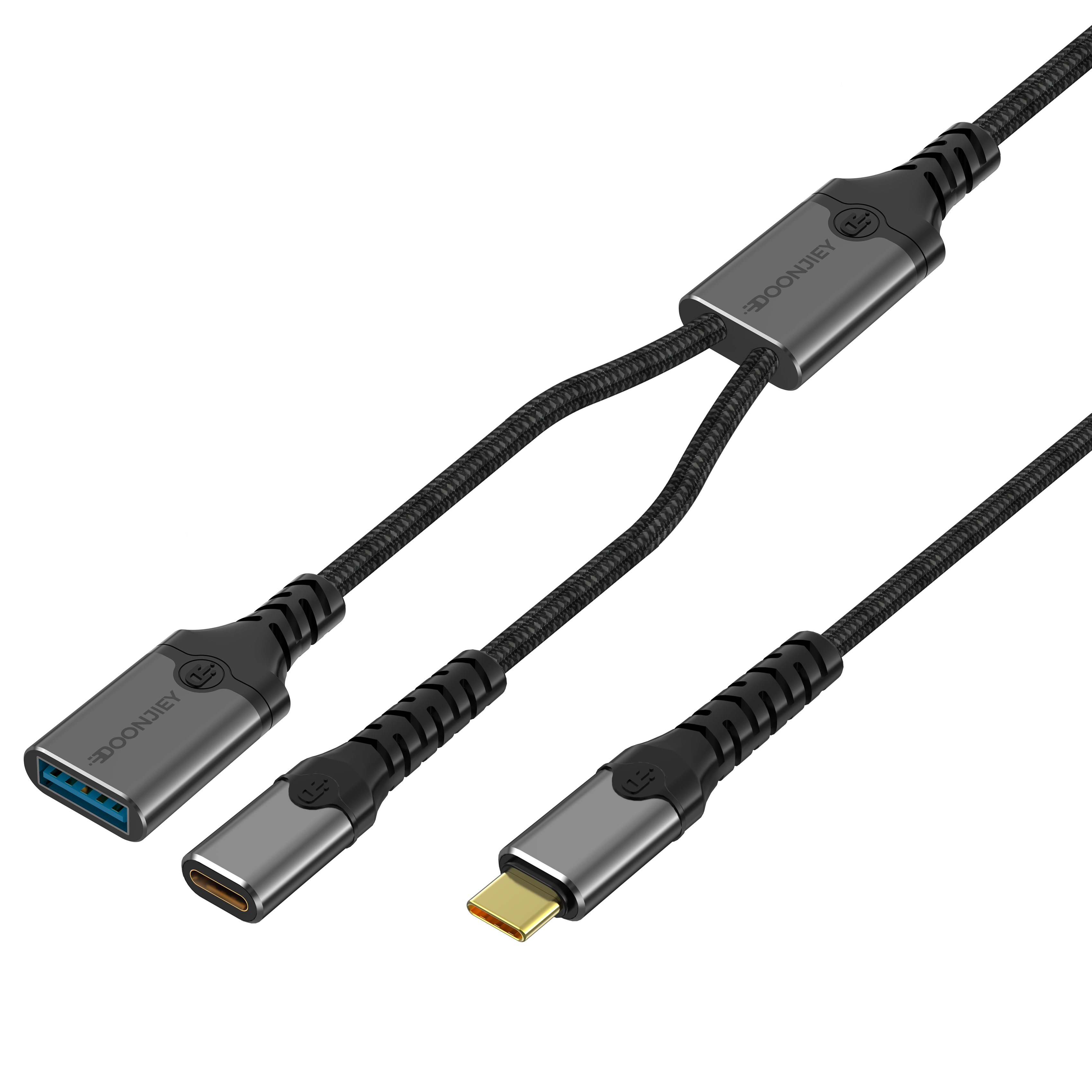 (DJTC04) Type-C Hub Adapter Cable 3-in-1 Splitter Hub USB+Type-C Ports OTG Data Transfer Supports PD 60W for Laptops, Mobile Phones