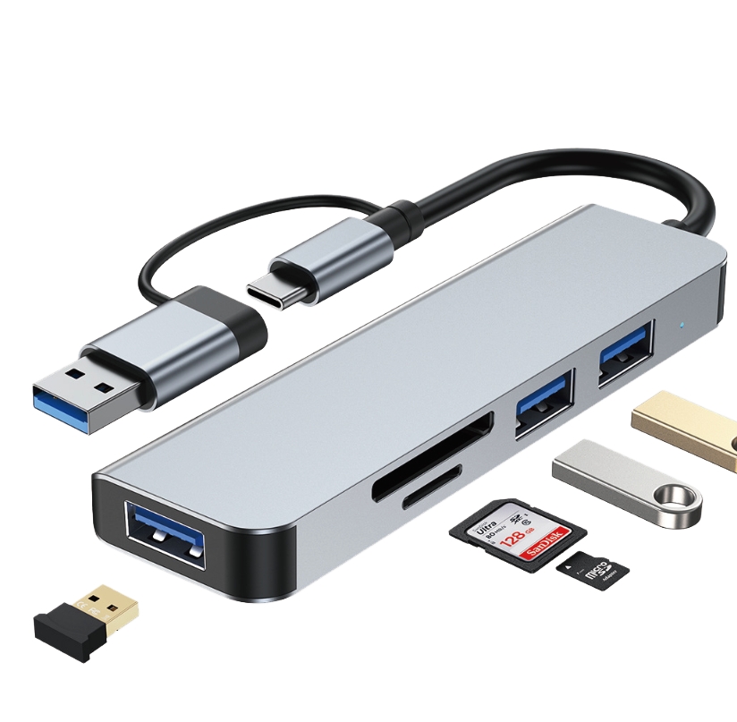 USB/USB-C Hub with Memory Card Reader and 3 USB 3.0 Ports