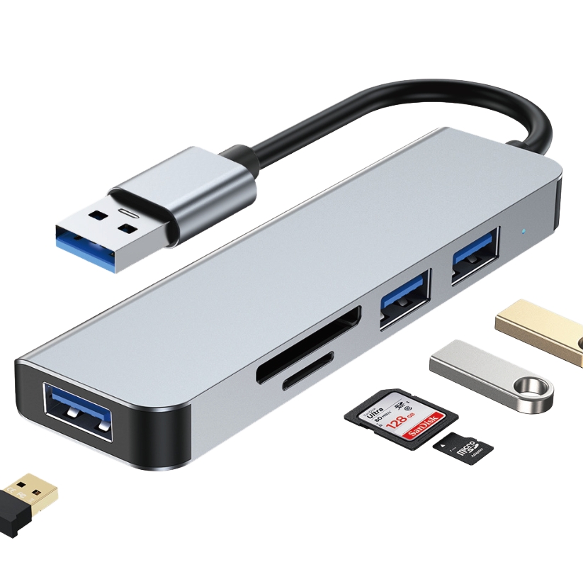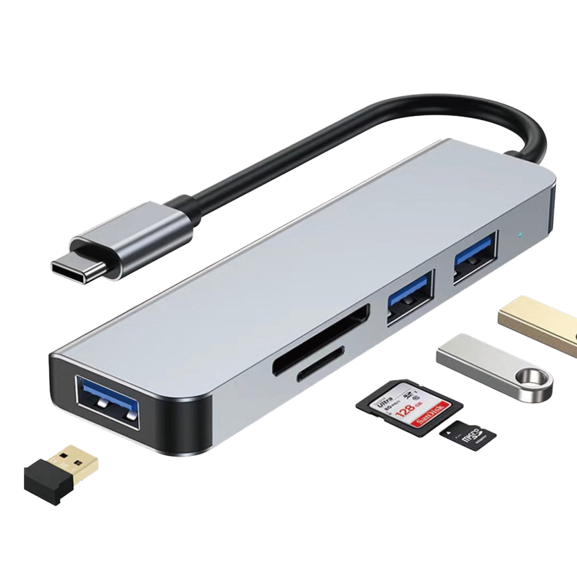 (2021111207081979) 5 in 1 Aluminum USB-C Hub with Memory Card Reader and 3 USB 3.0 Ports, for PC, Laptops, MacBook Pro/Air, iMac Pro, Surface and Tablet