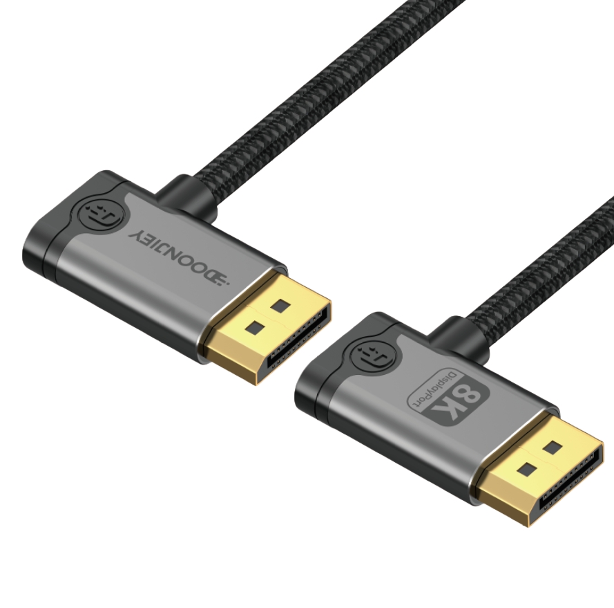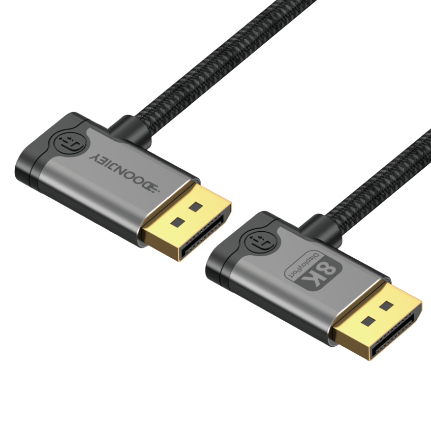 (DJDPLL8K)DisplayPort Male Double Left-hand Bend Video High-defition 1.4 Cable Support 8K@60Hz Resolution Braided Thunderbolt 4