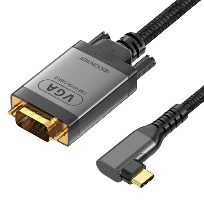 (DJCVGA01-2)USB C Angle to VGA Cable, USB Type C to VGA Conversion 1080P@60Hz for Laptops, Mobile Phones,Tablets HDTV, Displays and Projectors