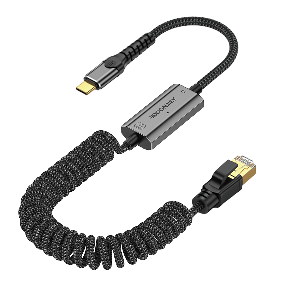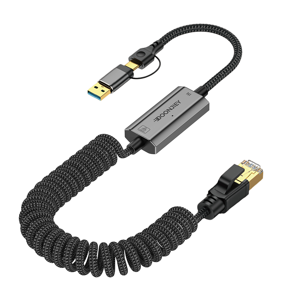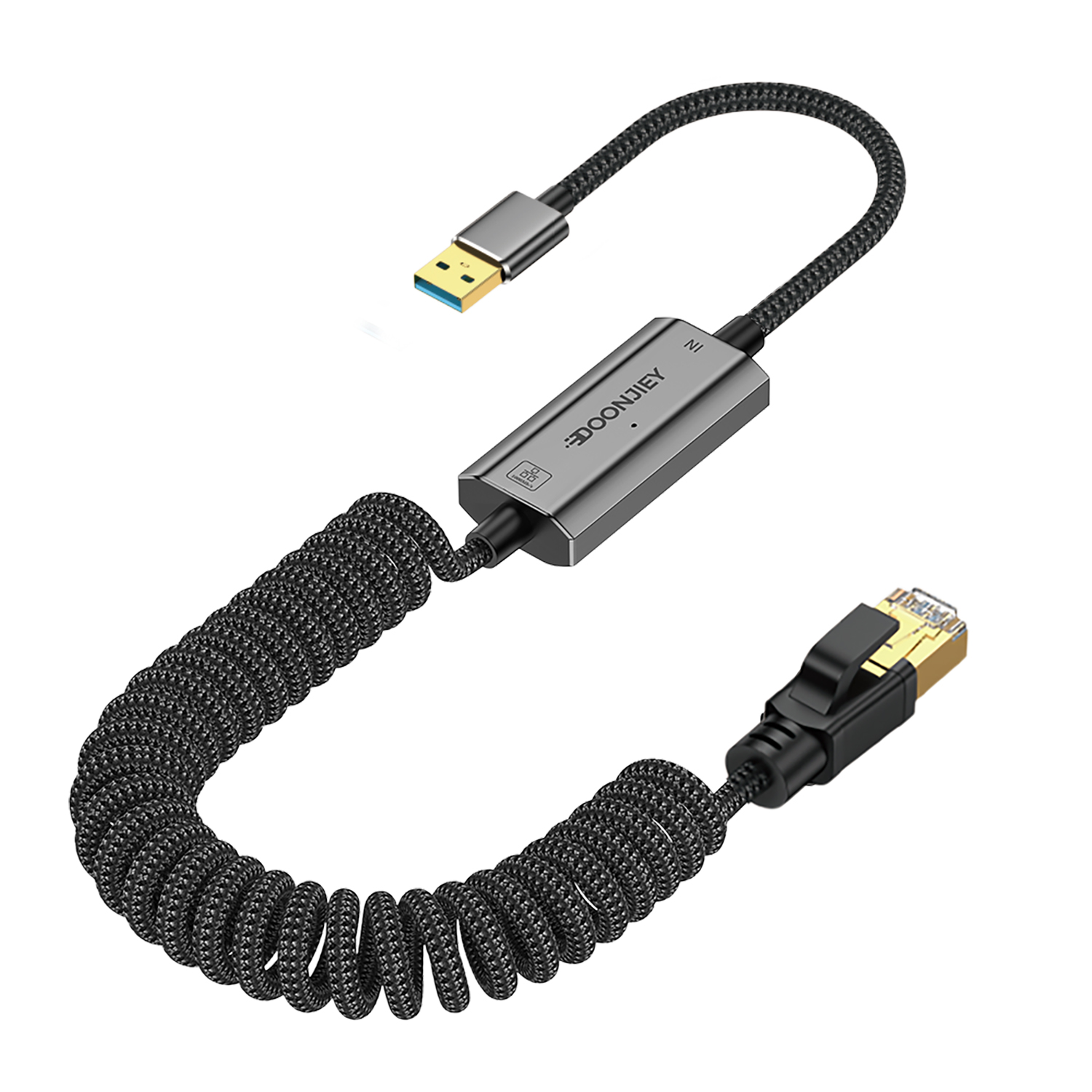 (DJNET01-9) USB to Ethernet Spring Cable Retractable, USB 3.0 A to RJ45 Male Cable Directly Connected Gigabit LAN Network, Compatible with Laptop, PC, MacBook, Switch, Windows 10/11, macOS, Linux