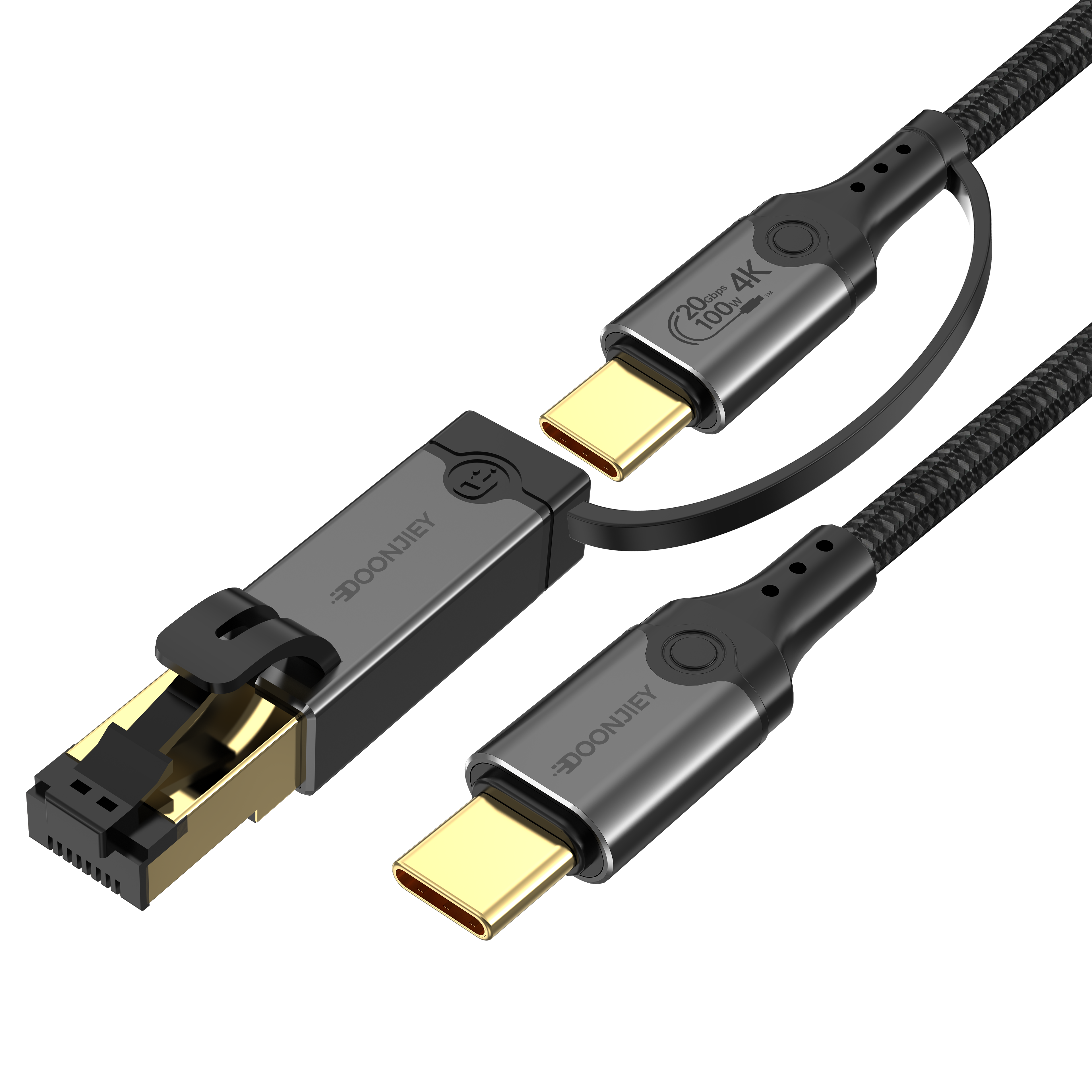 - 2-in-1 Multi-Functional Integration: A single cable combines the dual functions of a “USB-C Male-to-Male High-Speed Data Cable” and a “Type-C to RJ45 Gigabit Ethernet Adapter,” handling data transfer, networking, charging, and video output in a variety of scenarios with just one cable.