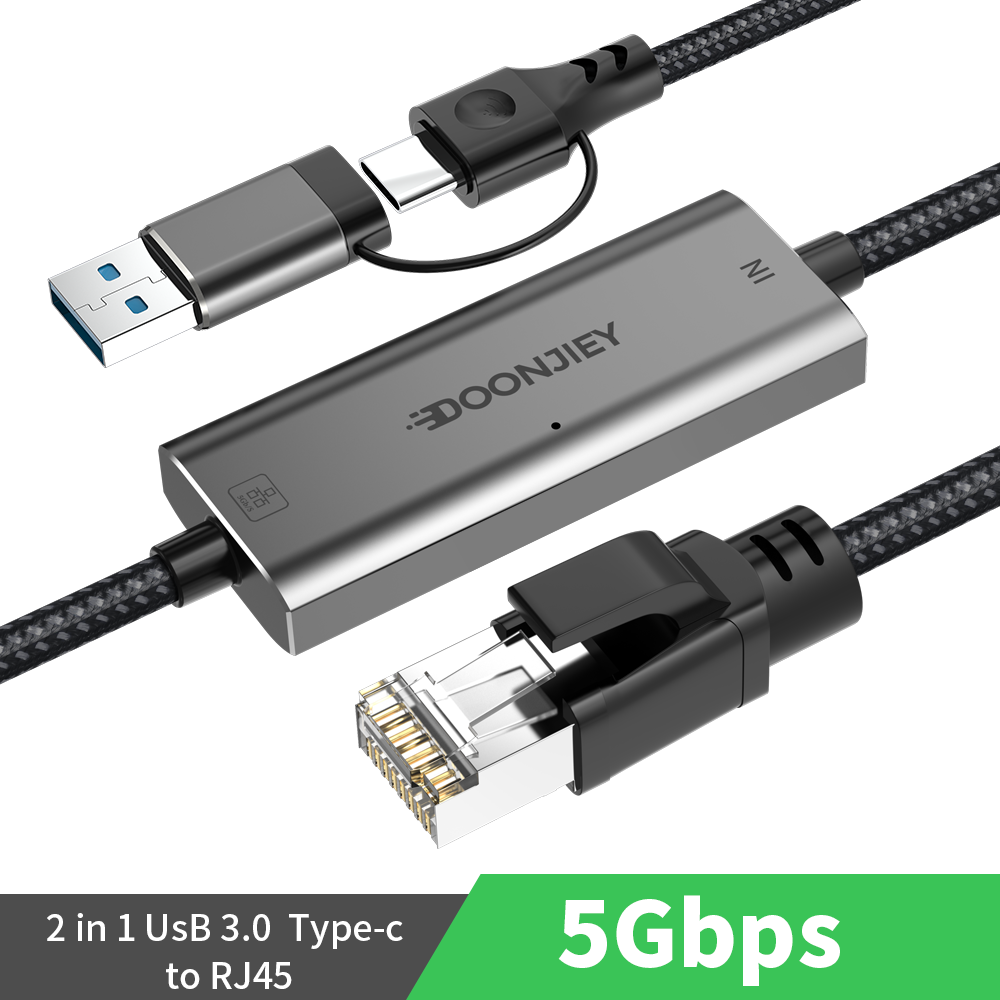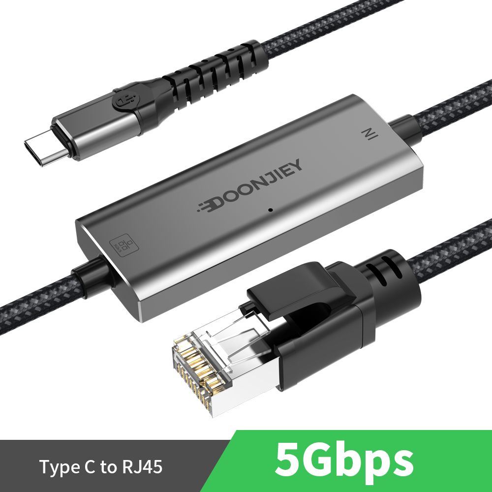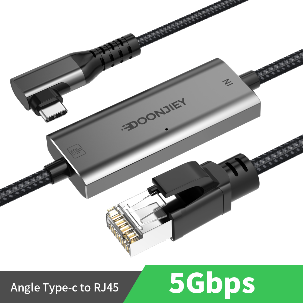 (DJNET21-4) Angle Type-C to Ethernet Adapter Cable 5000Mbps 5G LAN Network Adapter for Laptop PC