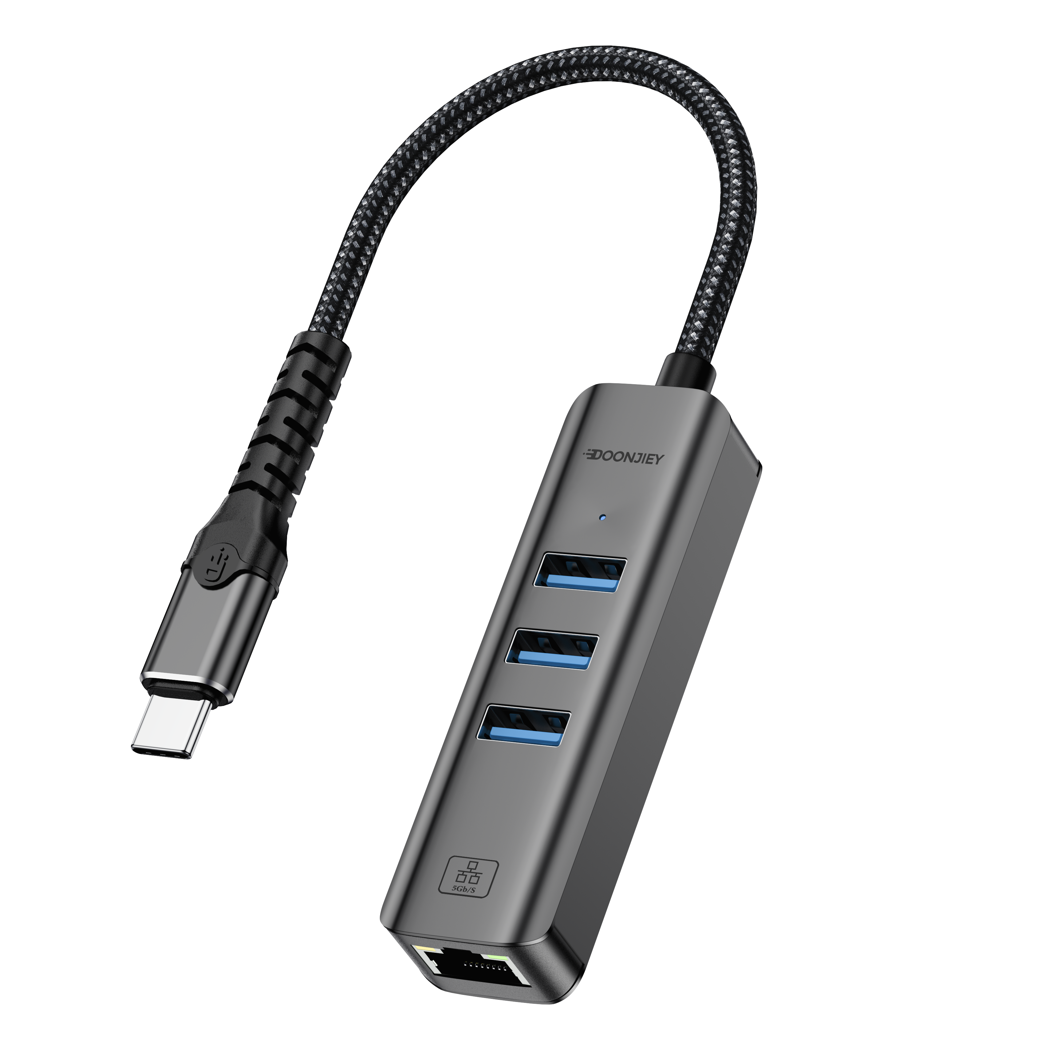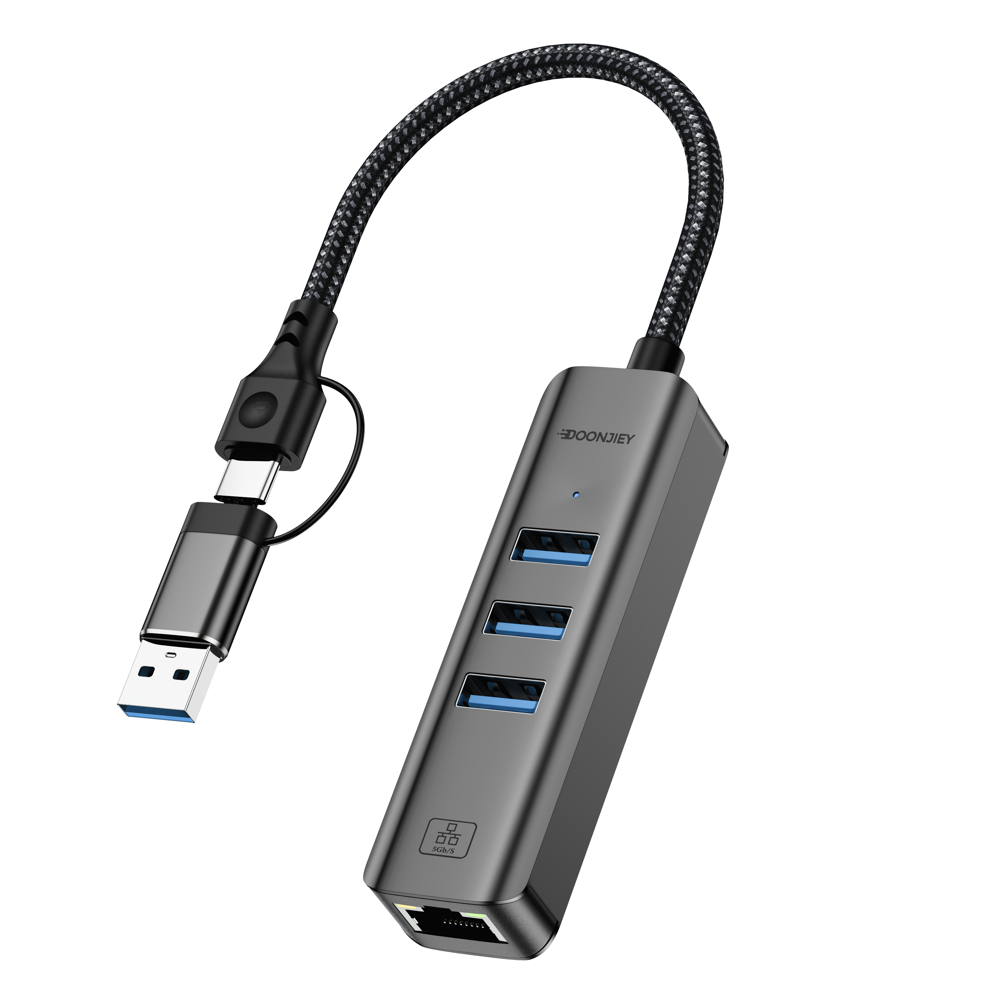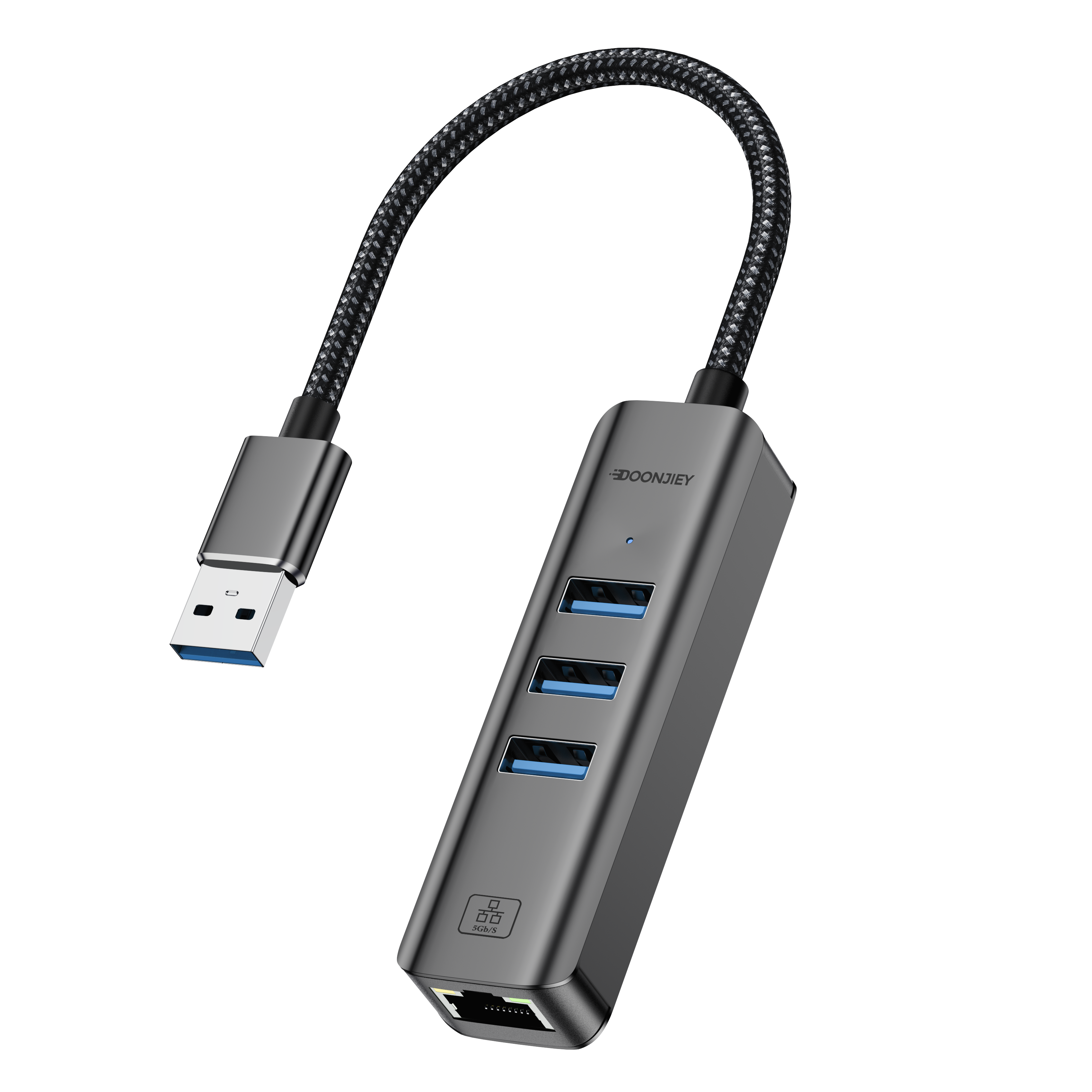 (DJNET15-2) USB 3.0 Hub 3-Port USB to Ethernet Splitter 5Gbps Wired Gigabit Network Converter for MacBook Laptop PC