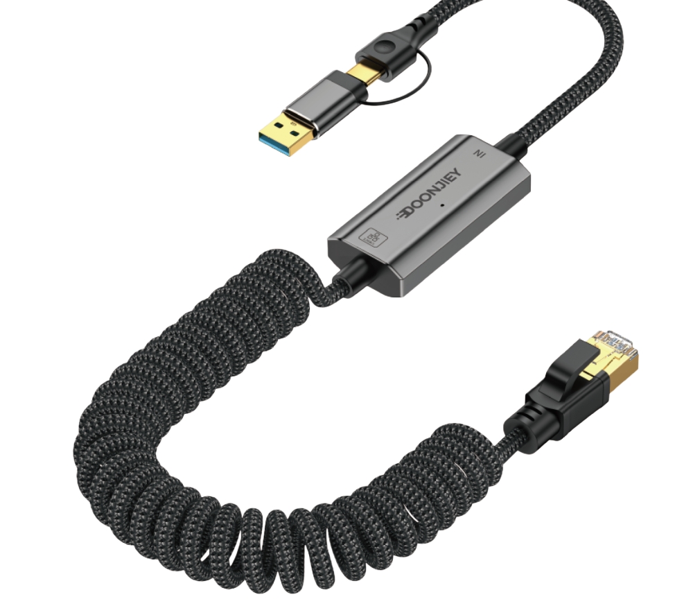 (DJNET03-8) Type-C/USB-A 2-in-1 to RJ45 Ethernet Spring Cable 2.5G