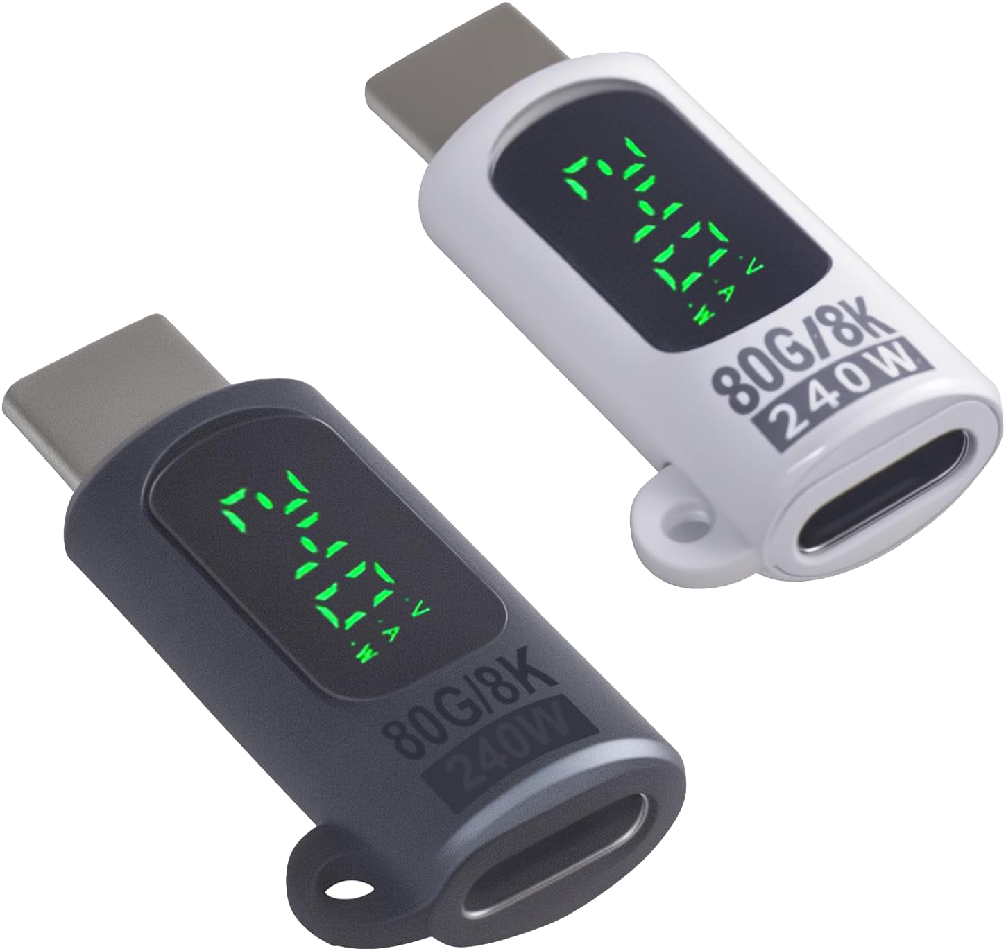 (DJUSB506) 80Gbps USB C Extension Adapter, 240W USB C Male to Female Adapter with Digital Display Type C Extender 8K@60Hz Thunderbolt 5 Connector for iPhone, MacBook, Headphone, OTG, Gamer, 2 Style