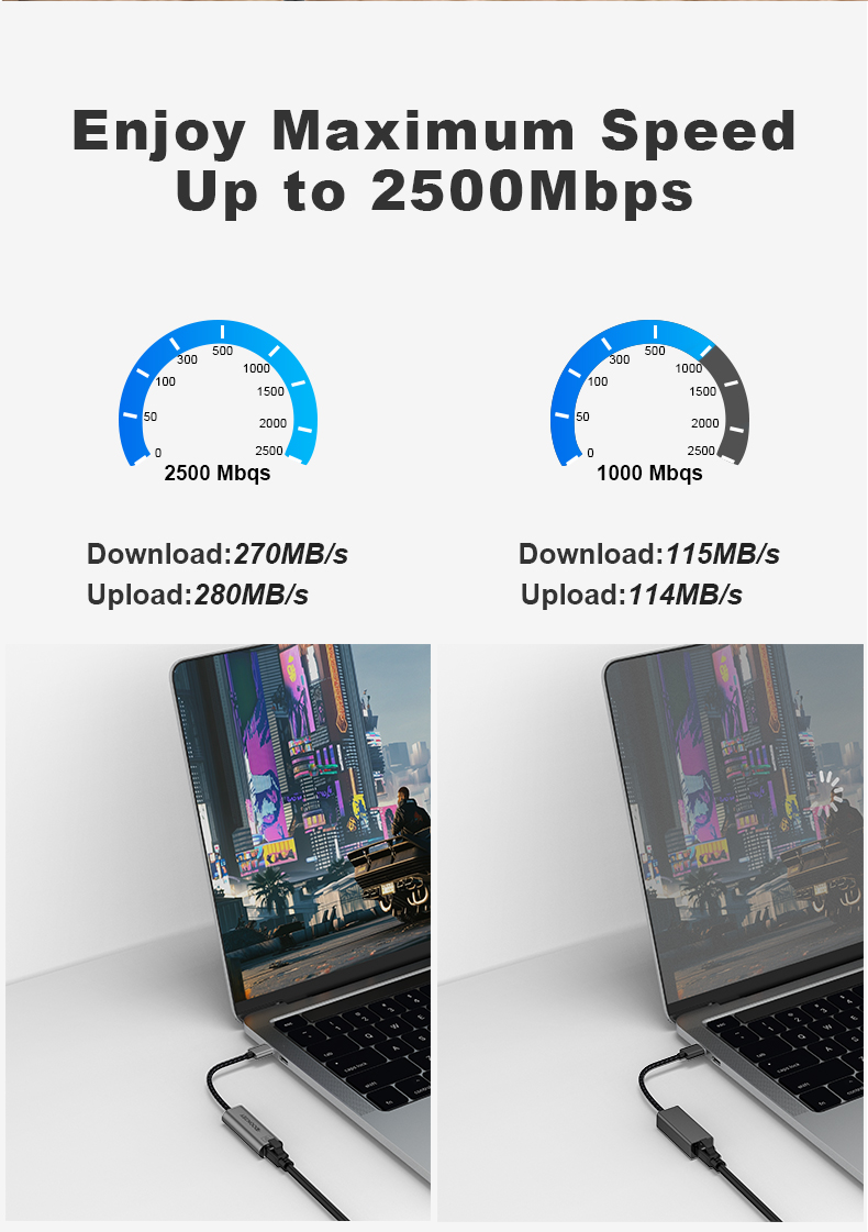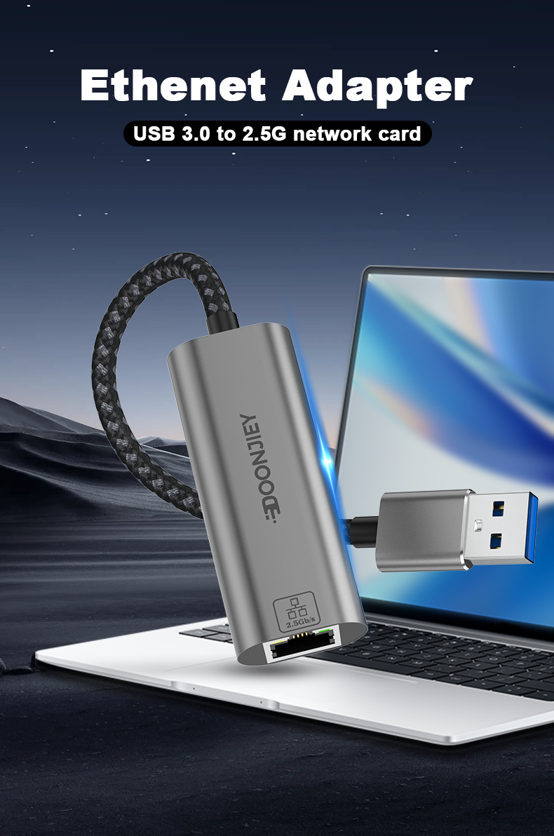 USB to Ethernet Adapter 2.5G Ethernet Adapter Aluminum Portable USB 3.0 to RJ45 LAN Network Dongle Compatible for Desktop Laptop