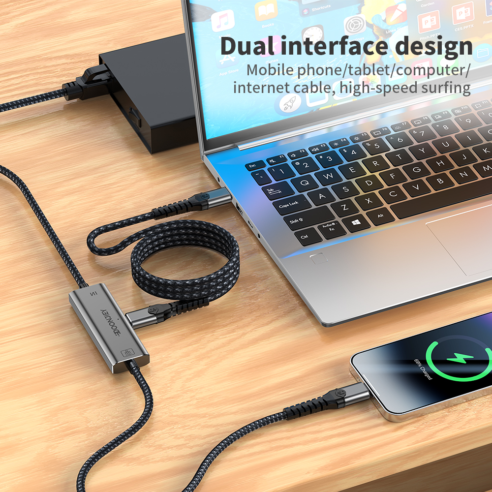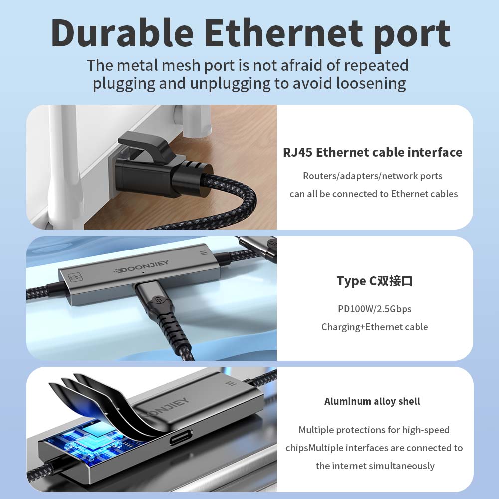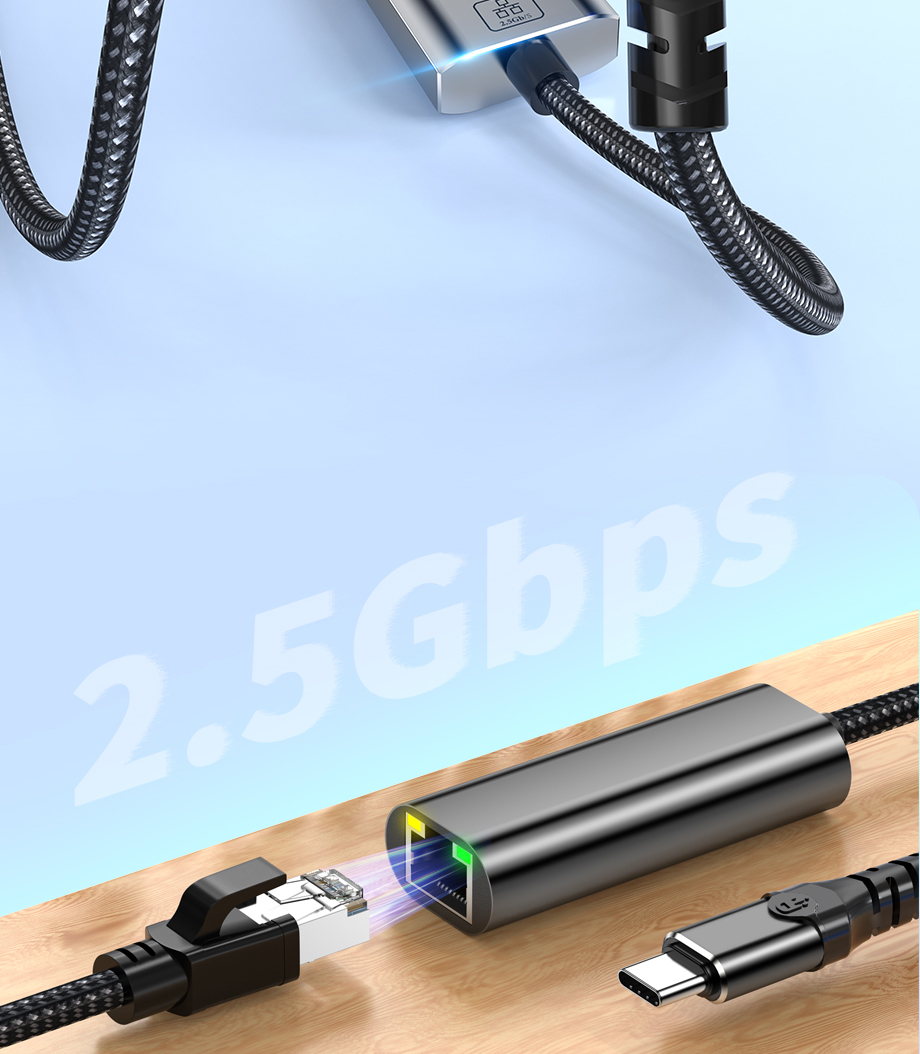 USB C to Ethernet Cable 1000Mbps/2.5G Type C to RJ45 LAN Network Adapter DP 100W Fast Charging Cable For Laptop Tablet Desktop
